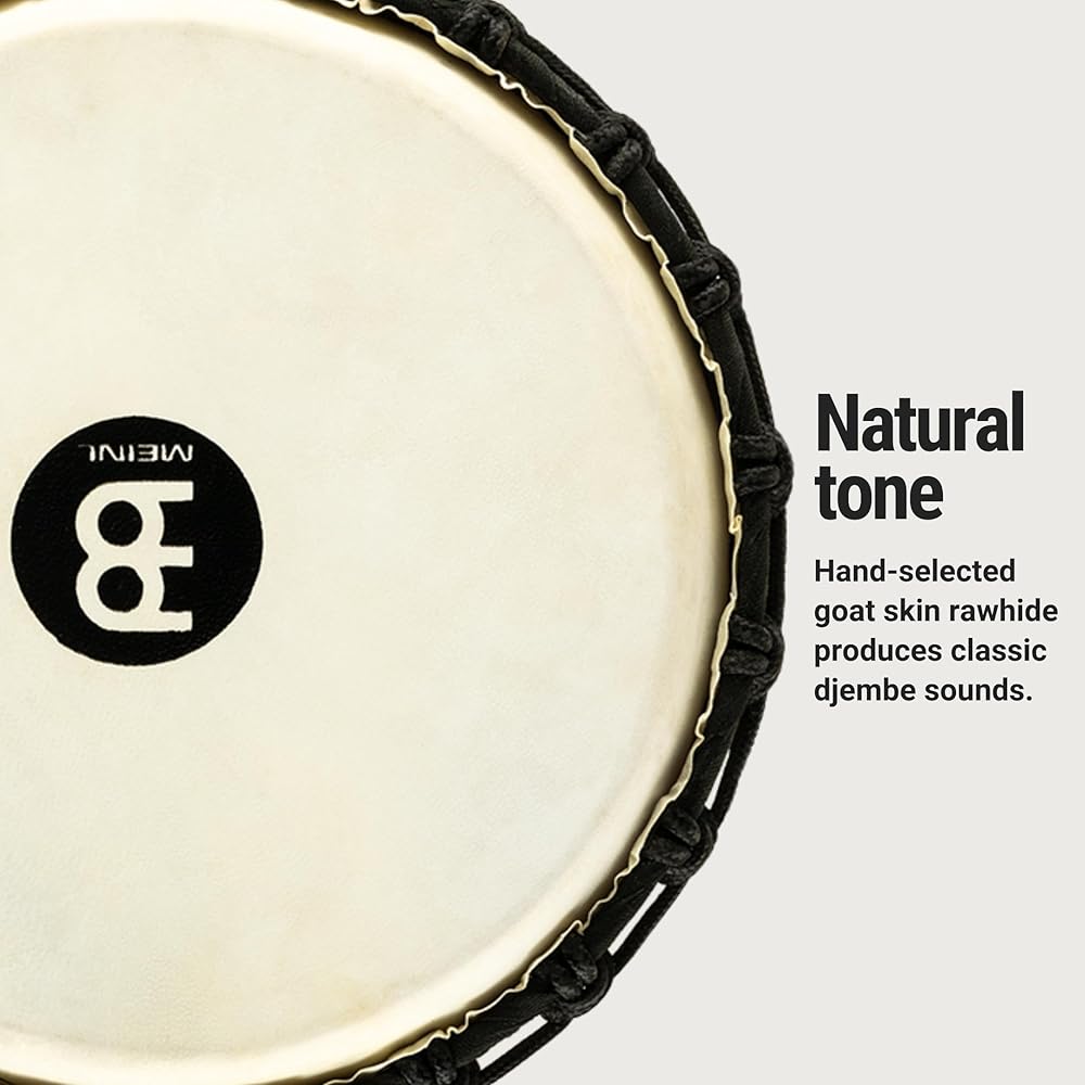 تتميز الأصداف المنحوتة يدويًا بسطح محفور يذكرنا بالمياه المرقطة بالشمس. هذا الملمس الخارجي أيضًا يجعل من السهل الإمساك بالدجيمبي بين الركبتين. يتم تأمين وضبط رؤوس الماعز المختارة يدويًا بواسطة نظام Mali-Weave التقليدي المصنوع من حبل نايلون عالي الجودة. تتميز موسيقى MEINL Headliner djembes بخصائص صوتية متميزة تتراوح من نغمات الجير العميقة الرنانة إلى القطع والصفعات عالية النبرة، وهي جاهزة للالتقاط واللعب مباشرة بمجرد إخراجها من الصندوق. لمزيد من الحماية لأداتك الموسيقية، تتخصص شركة MEINL في حمل الحقائب الخاصة بمنتجاتها الإيقاعية. تعتبر حقيبة MEINL djembe gig (الطراز # MSTDJB) مثالية لجميع أحجام djembe وهي مجهزة بخياطة نايلون شديدة التحمل وحزام كتف قوي.