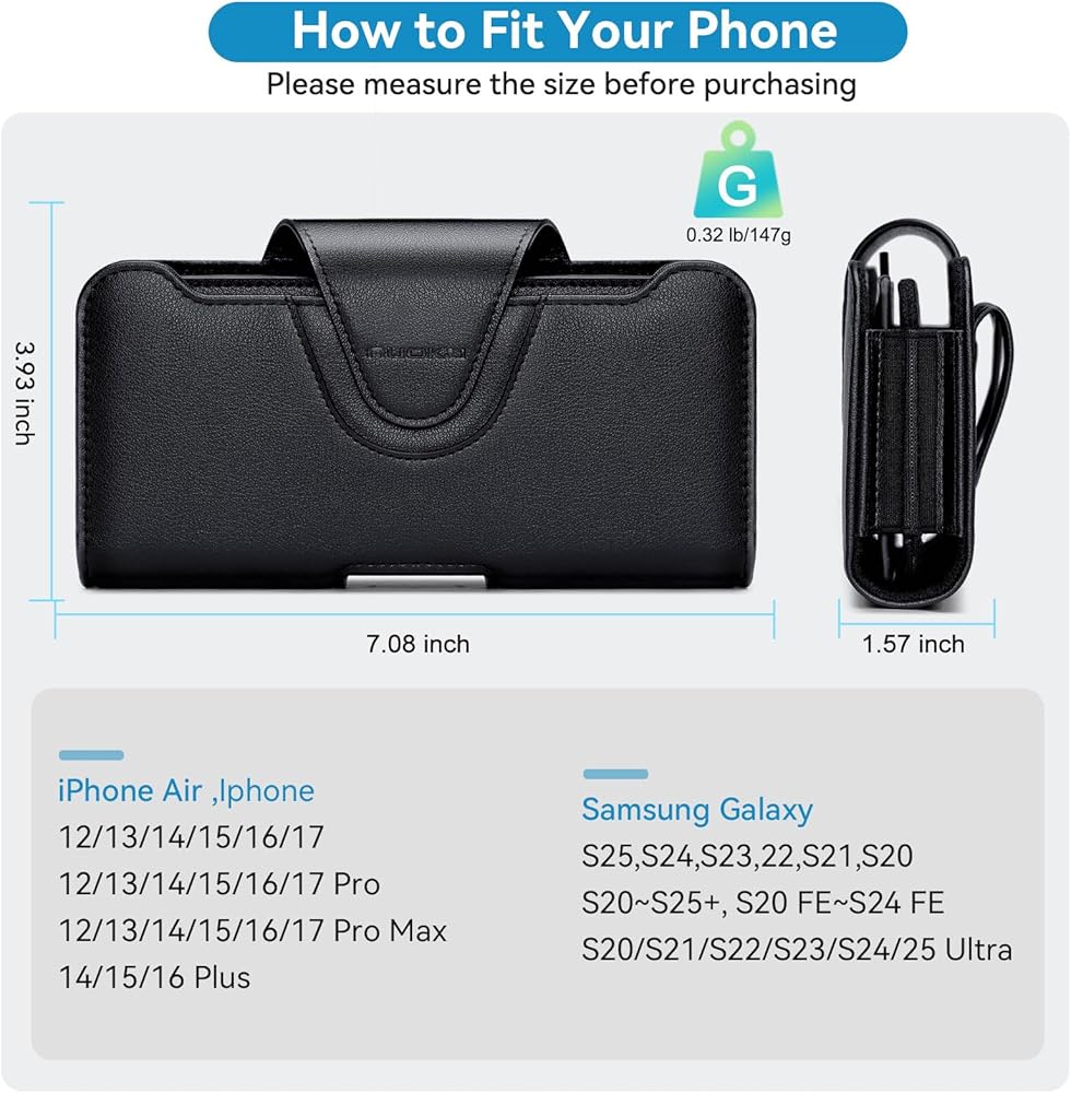 【خامة ممتازة】حافظات الهاتف الخلوي الخاصة بنا مصنوعة من مادة جلد البولي يوريثان عالية الجودة، وبطانة داخلية ناعمة لحماية هاتفك من الصدمات والصدمات والخدوش. تسمح الأربطة المطاطية الموجودة على جانب الحقيبة للبطانة الداخلية الناعمة بالتمدد أو الانكماش. التصميم الأفقي مريح لك عند ارتدائه أثناء الجلوس أو الانحناء. إنها الهدية المثالية لأي مناسبة مثل عيد الميلاد وعيد الحب وأعياد الميلاد واحتفالات الذكرى السنوية للرجال.