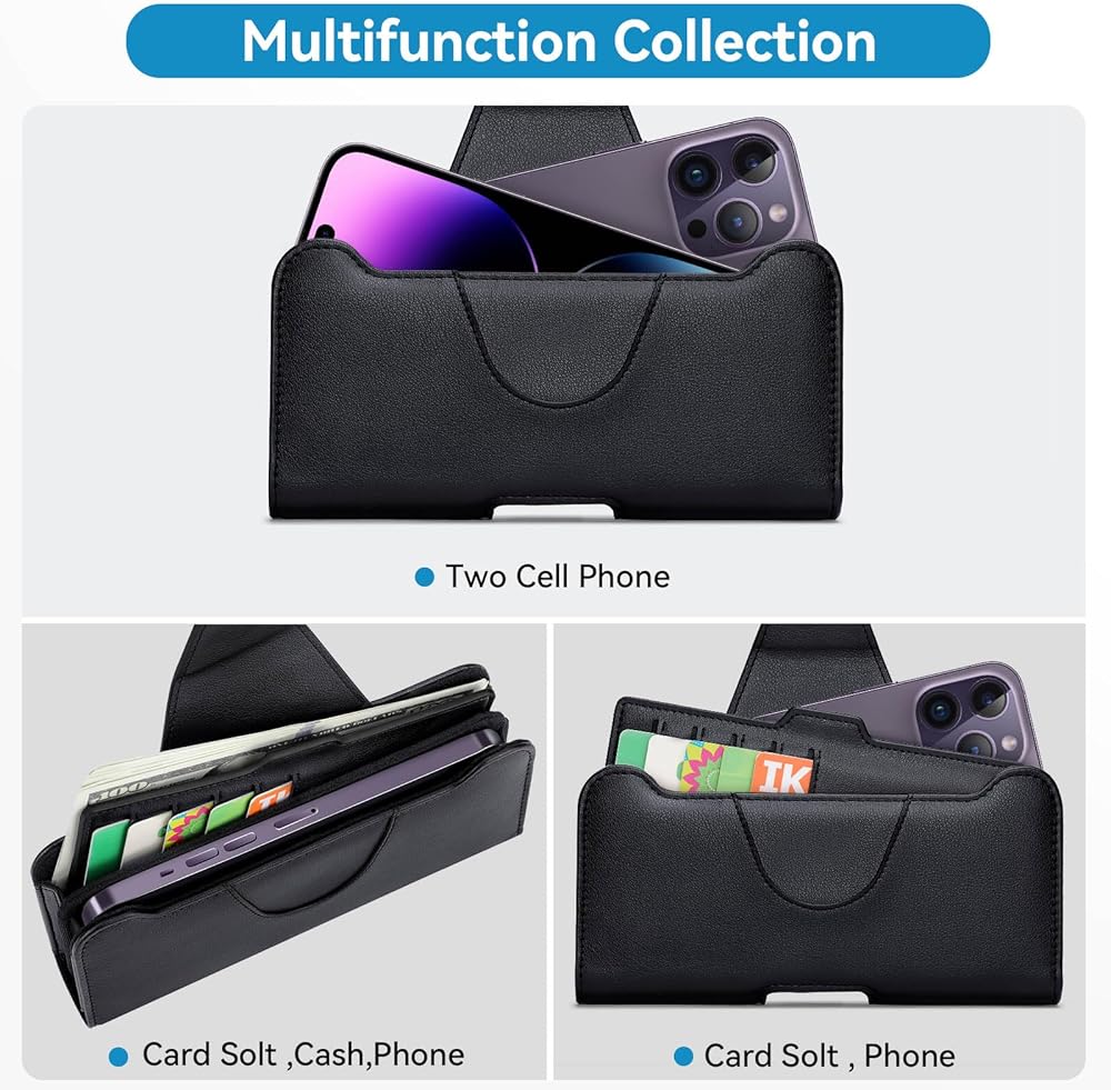 【متعددة الوظائف】تحتوي حافظة الهاتف المزدوجة لهاتفين على جيبين، وتأتي مع حامل بطاقة منفصل، ليس فقط للهواتف المحمولة ولكن أيضًا للبطاقات والهوية وبعض النقود. كل شيء له مكانه، لا شيء يمكن أن "يسقط ببساطة". (نصيحة: عند وضع هاتفين محمولين، يجب إزالة حامل البطاقة، وإلا فلن تكون هناك مساحة كافية). توفر حقيبة الهاتف الجلدية طريقة أفضل لحمل هاتفك الخلوي وحمايته، مما يجعل الوصول إلى هاتفك سهلاً دون زيادة حجم جيوبك!