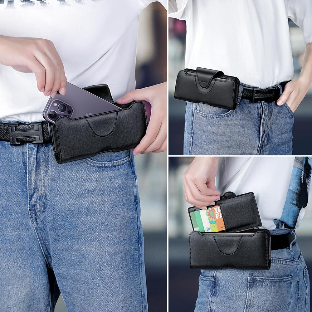 【مفيد للغاية】يتمتع حامل حزام الهاتف الخلوي للرجال هذا بالحل الأمثل للحصول على هاتف خلوي وبطاقة ائتمان وأموال ورقية آمنة ويمكن الوصول إليها بسهولة، أو حتى حمل هاتفين محمولين. تم وضع حافظة الهاتف الجلدية بشكل أفقي، مما يسمح بالجلوس بشكل مريح أثناء ارتدائها. مفيد للغاية عند السفر ويلزم الوصول المتكرر إلى محتوياته.