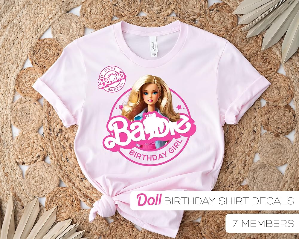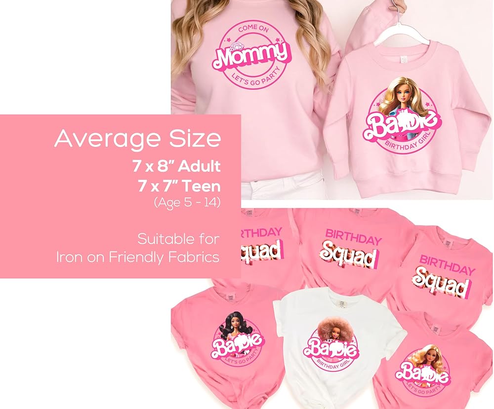 Pink Doll Princess Themed Birthday Squad Family Shirts Birthday Party Decorations Iron ons Transfer Heat Decals Pack