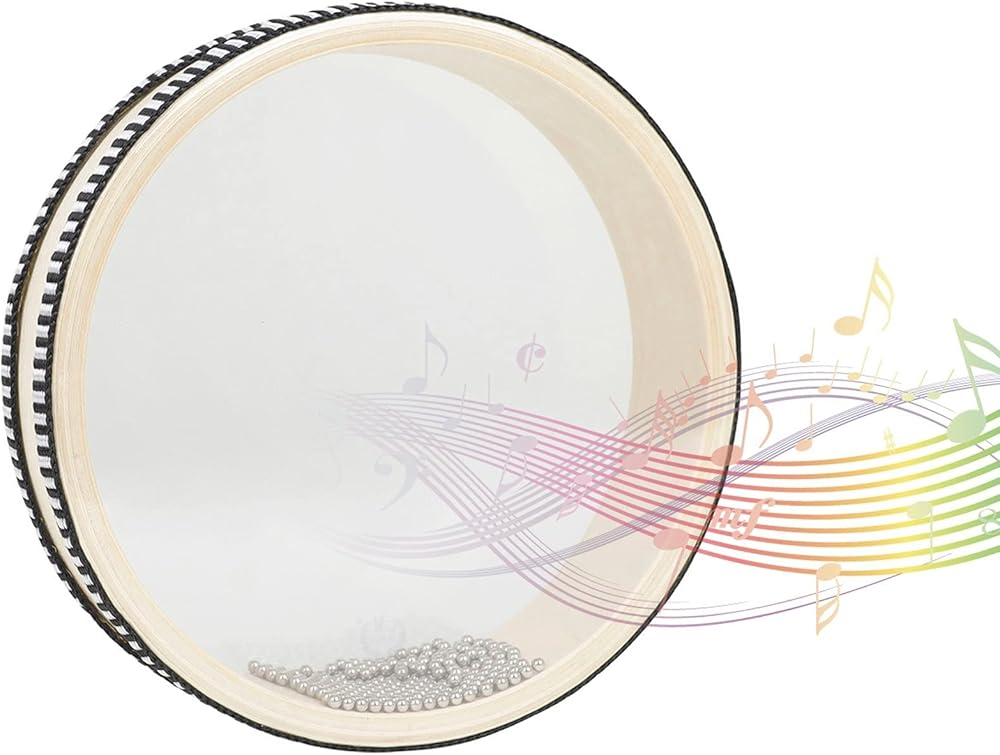 طبلة موجة حبة المحيط - 8 طبلة موجة المحيط، قرع طبل موجة البحر، طبلة صوت البحر لطيف، إطار خشبي طبل اليد آلة موسيقية تعليمية للمنزل اللوازم المدرسية هدية (10 بوصة)