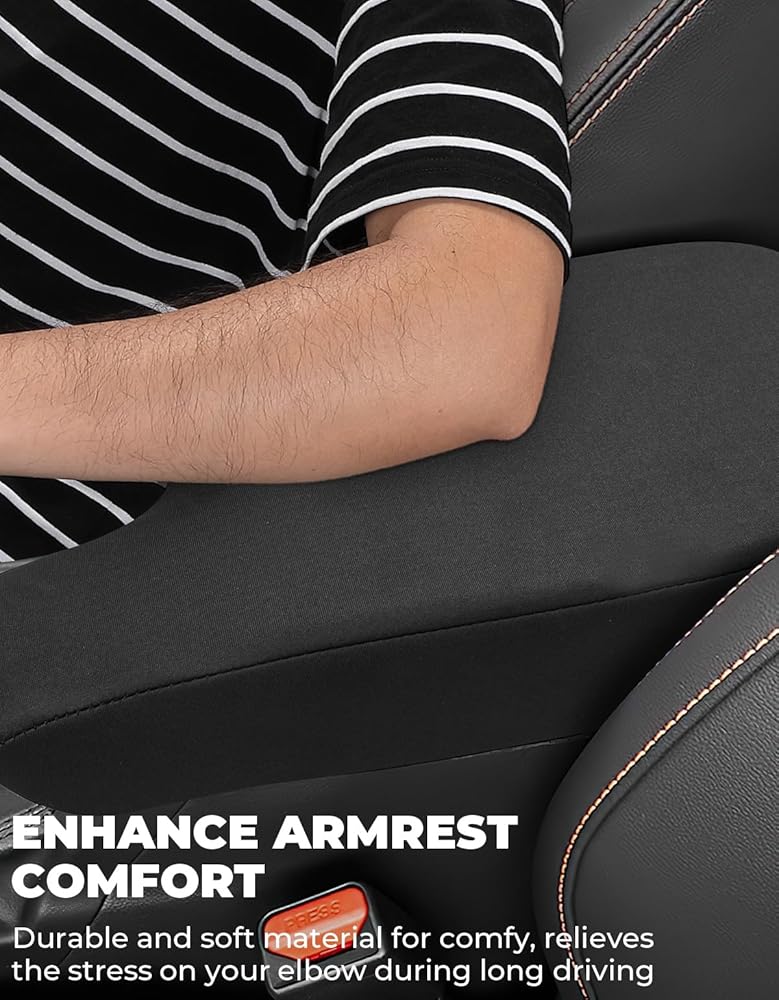 【مريحة على البشرة】مصنوعة من جلد ناعم عالي الجودة، ومملوءة بالإسفنجة. يعزز راحة مسند الذراع بشكل إضافي، ويخفف من ضغط مرفقك أثناء القيادة، ويمنع ذراعك من الحرق في الصيف الحار أو يمنع الذراع المتعرق من الانزلاق.