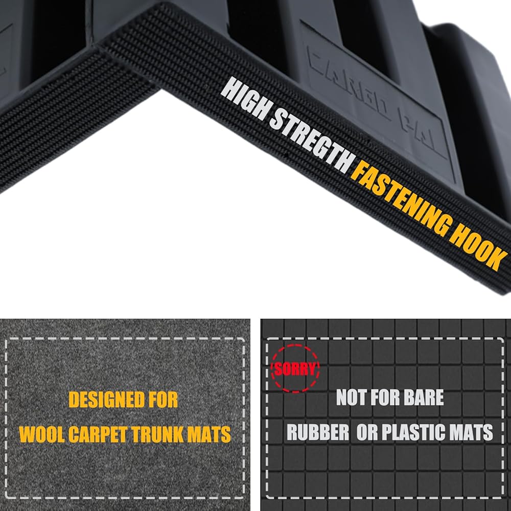 تحقق من سطح السجاد الخاص بك قبل الشراء: تم تصميم كتل الشحن الخاصة بنا خصيصًا للاستخدام على سجادات صندوق السجاد المصنوعة من البوليستر أو النايلون الأشعث والفخم؛ يرجى ملاحظة أنها غير مناسبة للاستخدام على سجادات صندوق السيارة العارية المطاطية/البلاستيكية