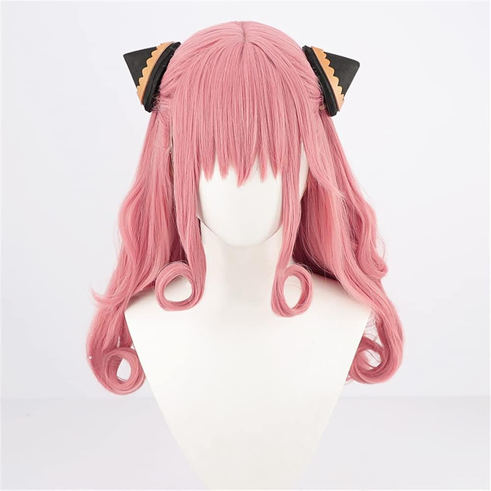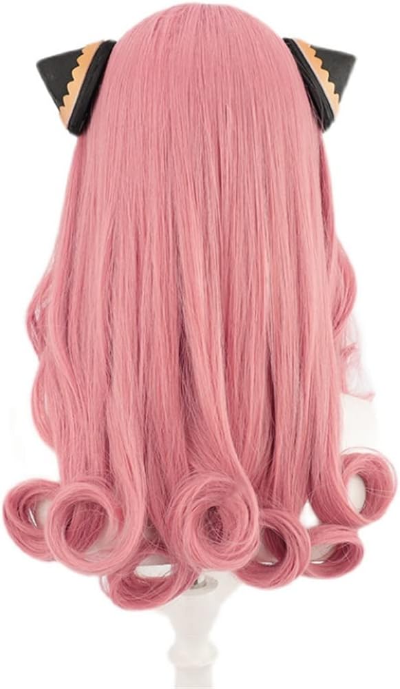 شعر مستعار أنيمي كوسبلاي مع دبابيس شعر شعر مستعار طويل للحفلات باللون الوردي للنساء والفتيات