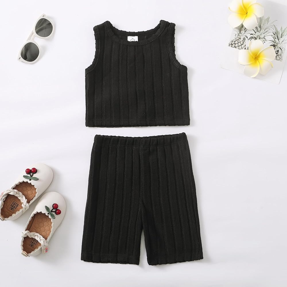 ملابس صيفية للفتيات الصغيرات، سويت شيرت بدون أكمام من مزيج القطن، خصر مطاطي قصير، هذا سيجعل طفلك الصغير أكثر روعة وجاذبية.