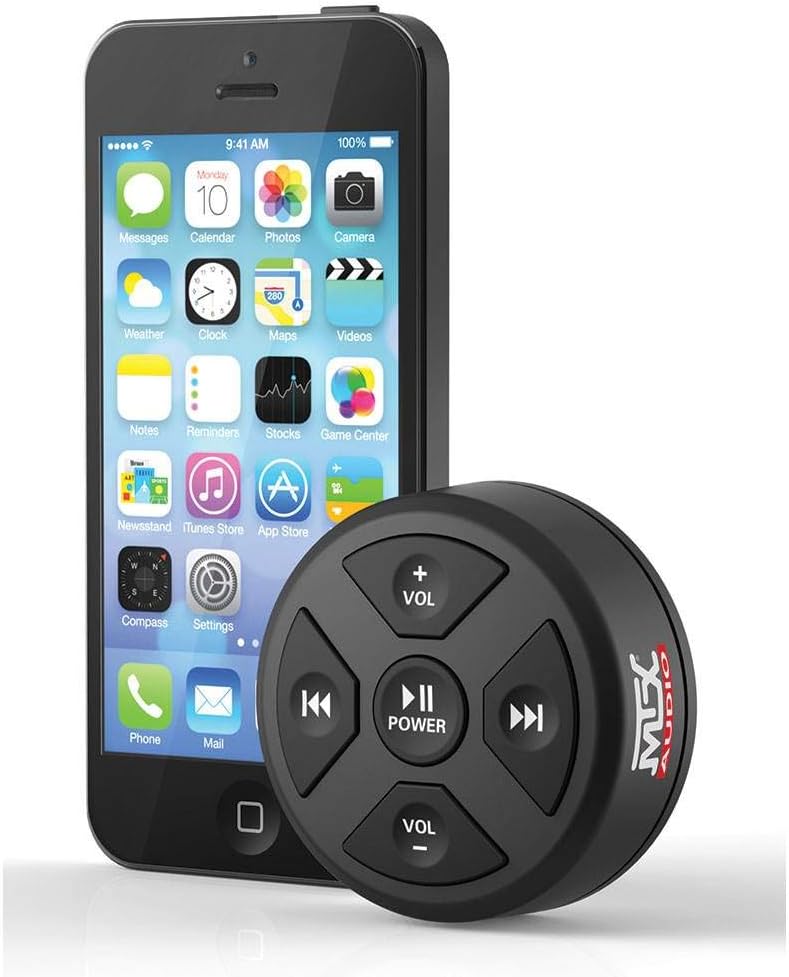 Take the tunes on your weekend toys up a notch. No one wants to fumble with their phone while they're out on the road, so control your device with the MTX Bluetooth Receiver and Remote. This receiver can be used with or without an amplifier, for maximum versatility. You won't have to worry about the elements ruining your jams with the IP66 rated design that resists dirt and water for marine and ATV applications. If you normally wear gloves, rest assured that you'll be able to change tracks and adjust the volume on the oversized backlit buttons. Don't mess with a complicated head unit, get the MTX Boat/Motorcycle Audio Receiver and Remote.