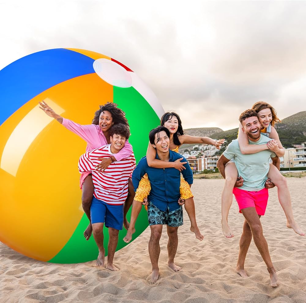 كرة شاطئ عملاقة قابلة للنفخ بطول 12 قدم، كرة شاطئ كبيرة بألوان قوس قزح، كرة شاطئ كبيرة، كرة حمام سباحة كبيرة، كرة شاطئ قابلة للنفخ، كرة شاطئ رياضية، لعبة جامبو لحمام السباحة، لعبة مائية، ديكور الحفلات