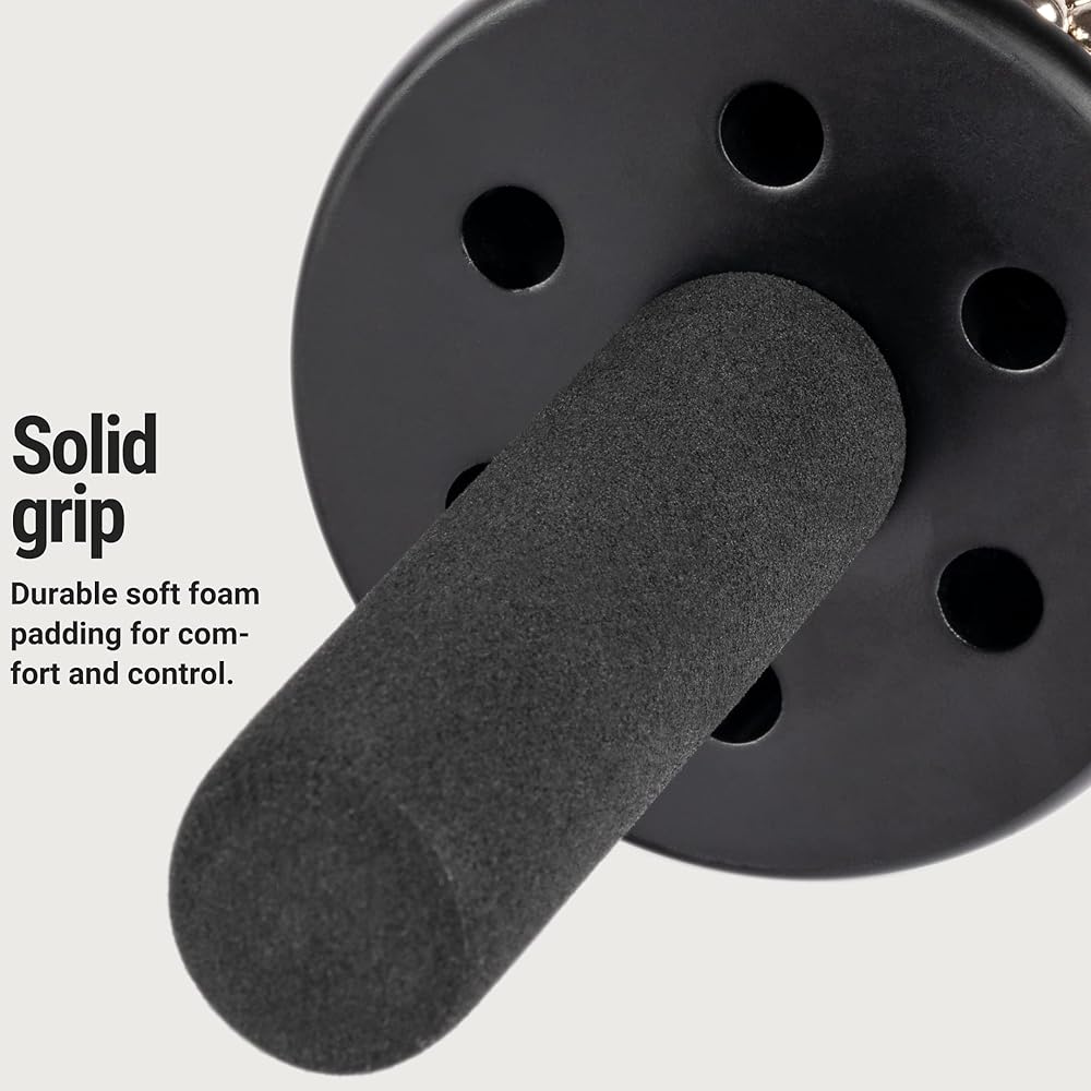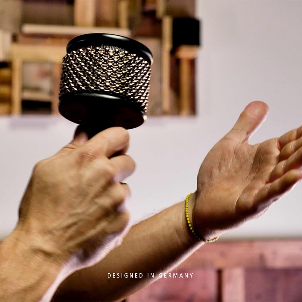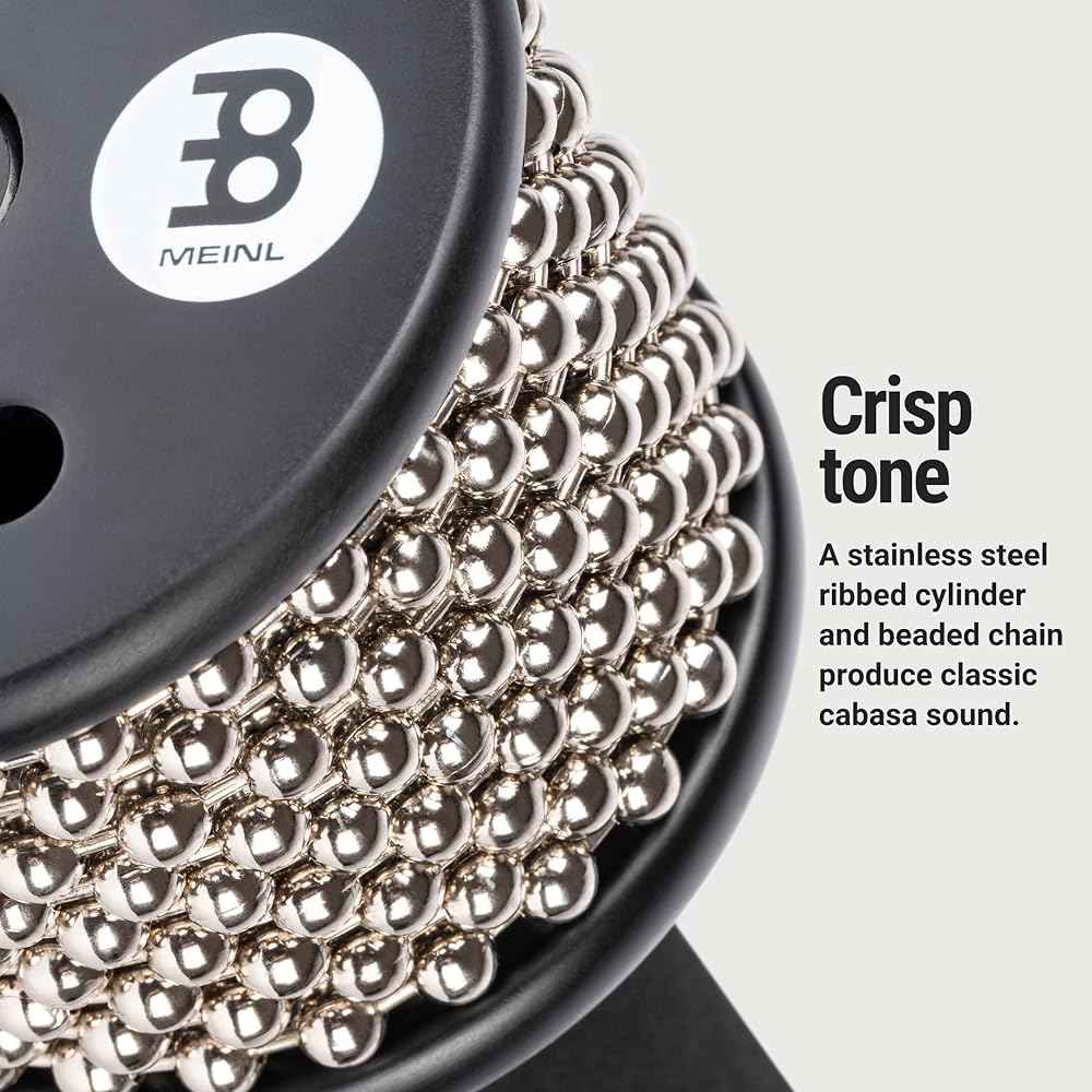 كيف تعمل: افرك أو هز أو قم بتدوير أو اضغط على سلسلة الخرز المصنوعة من الفولاذ المقاوم للصدأ بيدك للحصول على أصوات مختلفة؛ خلف السلسلة توجد أسطوانة مضلعة من الفولاذ المقاوم للصدأ تنتج تأثير كاباسا الخشن الكلاسيكي