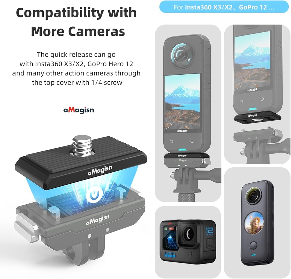 Rszfnjxry Magnetic Quick Release Mount Compatible with Insta360 X3/X2 and Compatible with Gopro 12