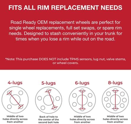 تناسب جميع احتياجات استبدال الحواف - تعتبر عجلات استبدال OEM الجاهزة للطرق مثالية لاستبدال عجلة واحدة، أو مقايضات المجموعة الكاملة، أو احتياجات الحافة الاحتياطية. *ملاحظة: لا يشمل هذا الشراء الإطارات أو أجهزة استشعار TPMS أو صواميل العروة أو سيقان الصمامات أو أغطية العجلات.