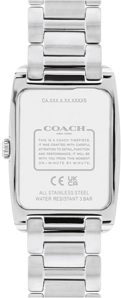 Caring for Your Timepiece: Your Coach watch has been developed with meticulous attention to quality, function and detail. A maintenance interval of 3 to 5 years is recommended, in addition to any required battery replacement. Never open the watch yourself.