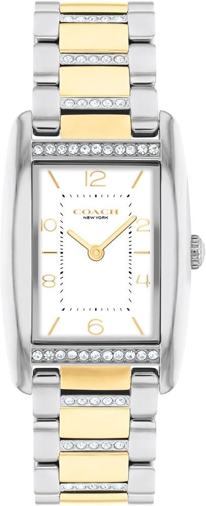 ساعة كوتش ريس النسائية - ساعة كوارتز تانك 2 ساعة مع سوار مرصع بالكريستال - مقاومة للماء حتى عمق 3 ATM/30 مترًا - هدية لها - ساعة عصرية متميزة لكل مناسبة - 24 ملم