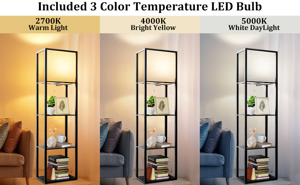 خيارات ألوان 3CCT - توفر المصابيح الأرضية لغرفة المعيشة لدينا 3 أوضاع درجة حرارة ألوان قابلة للاختيار (2700 كلفن، 4000 كلفن، و5000 كلفن)، مما يسمح لك بالتبديل بسهولة بين الإضاءة الدافئة والباردة والمحايدة وفقًا لتفضيلاتك أو الجو المحدد الذي ترغب في إنشائه