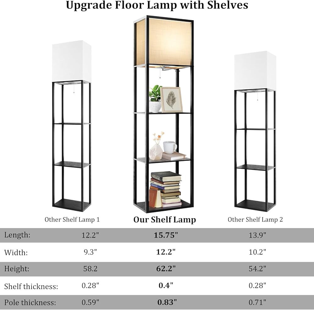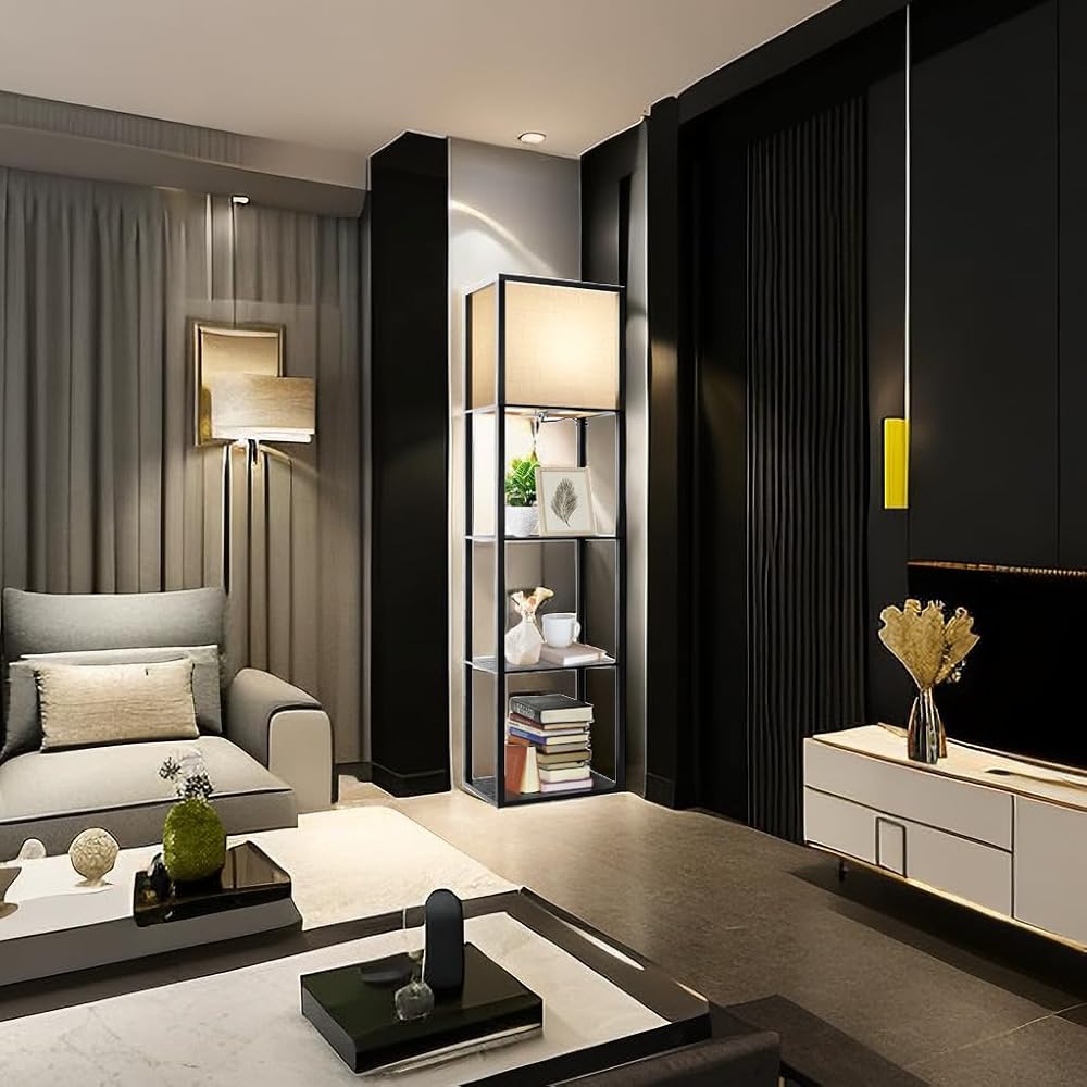 تصميم موفر للمساحة - يوفر المصباح الأرضي AVV المزود بأرفف إضاءة وظيفية ومساحة تخزين إضافية مع أرفف ذات 4 طبقات. يتيح لك ذلك عرض وتخزين مختلف العناصر بسهولة، مثل الكتب أو النباتات أو الزخارف أو اللوازم المكتبية، كل ذلك في وحدة واحدة مدمجة