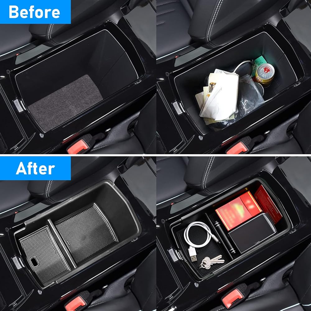 【حافظ على الأشياء منظمة】بعد تثبيت صينية صندوق تخزين مسند الذراع 2023 ID4، يمكنك وضع النظارات الشمسية والهاتف المحمول والمحفظة والمفاتيح والبطاقات وأي أشياء صغيرة أخرى لسهولة الوصول إليها. قل وداعًا للفوضى. تزيد من سهولة استخدام مساحة تخزين مسند الذراع. .