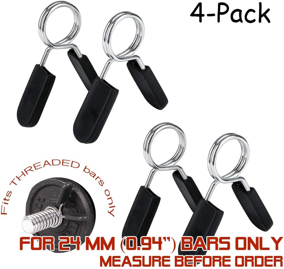 4 قطع من أطواق المشابك الزنبركية، 1 بوصة (0.94 بوصة، 24 مم) مشابك أثقال لطوق التمرين للأوزان والدمبل في صالة الألعاب الرياضية ومعدات رفع الأثقال وتدريبات اللياقة البدنية