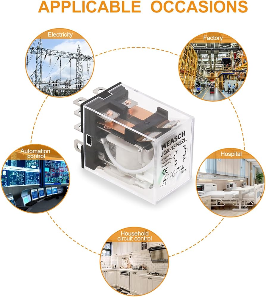 قطعتان من مرحل الطاقة الكهرومغناطيسية، JQX-13FL 2Z، ملف DC 24V، DPDT، 10A 8Pin، مع ضوء مؤشر LED (2)