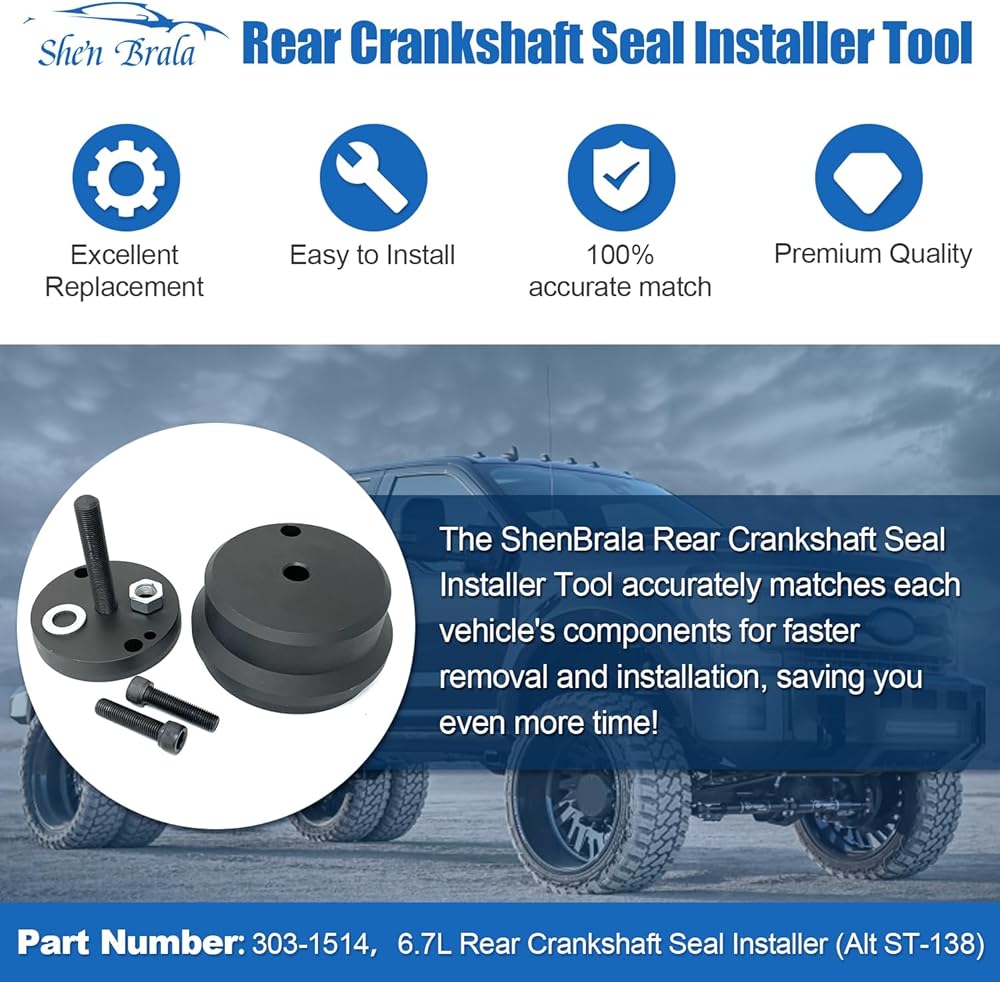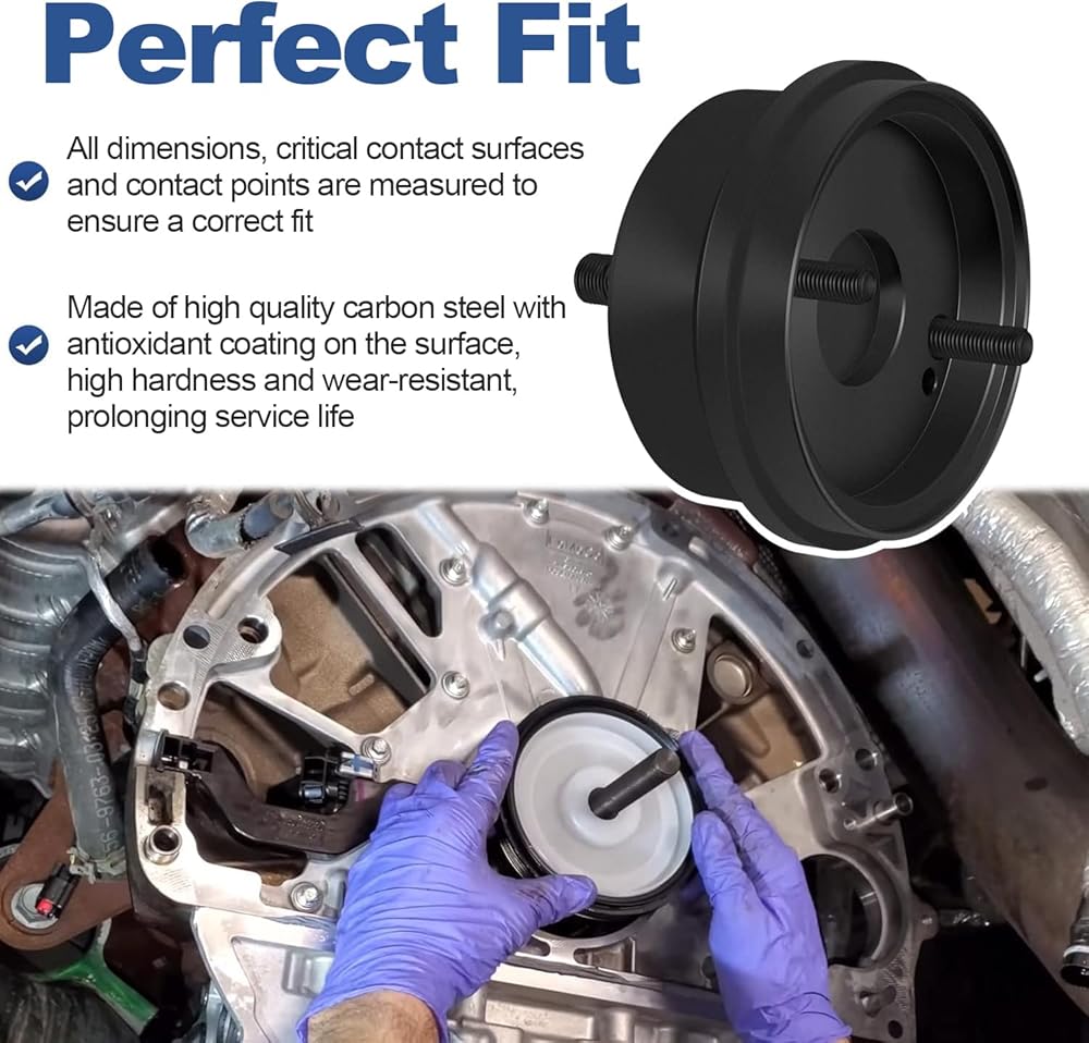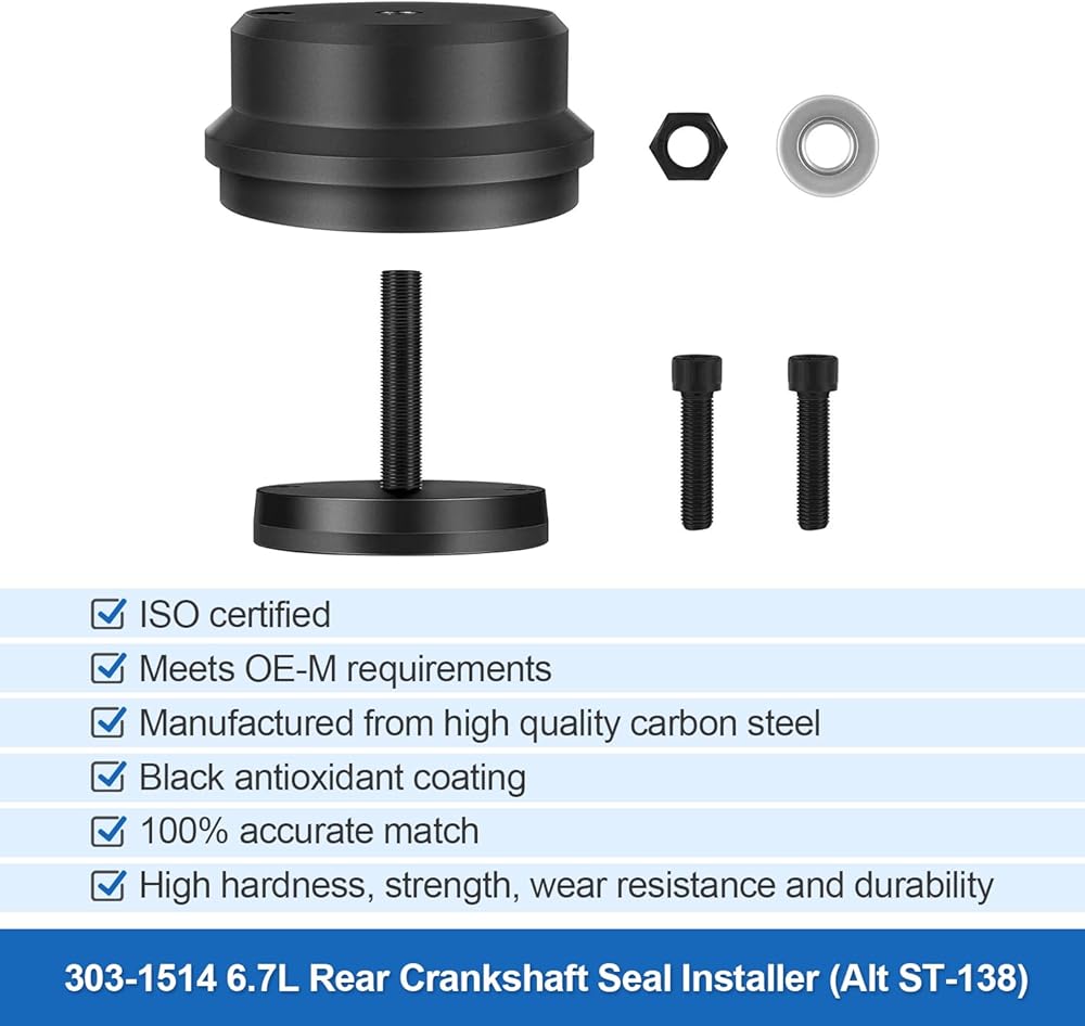 التطبيق: يساعد على تثبيت أغطية وأختام العمود المرفقي الخلفي بسهولة أكبر دون إتلاف الأختام والتسبب في حدوث تسربات. يضمن العمق الصحيح للتركيب وختم أختام زيت العمود المرفقي