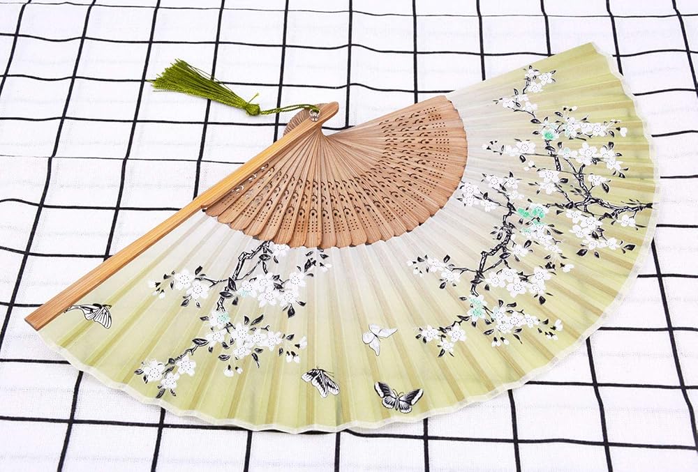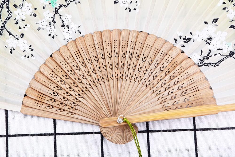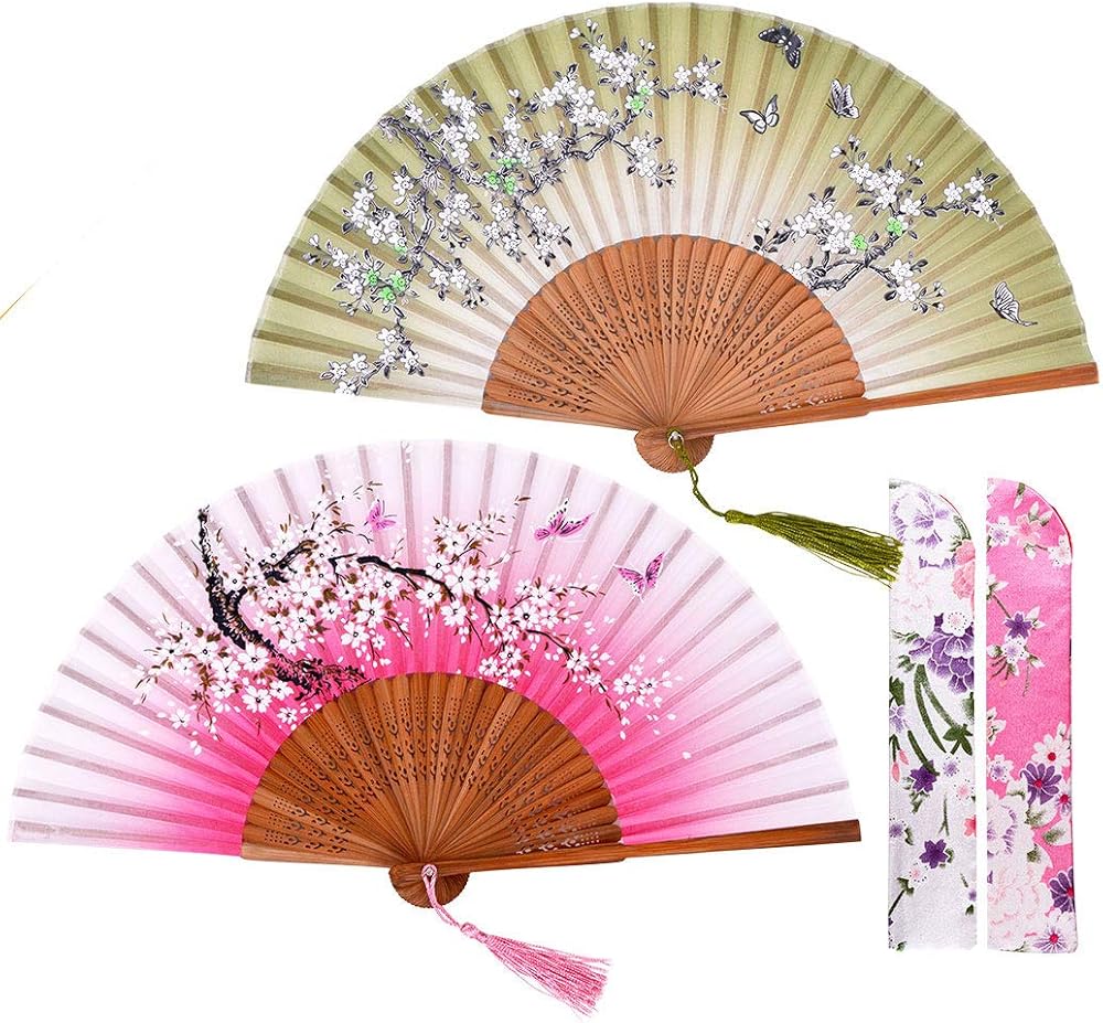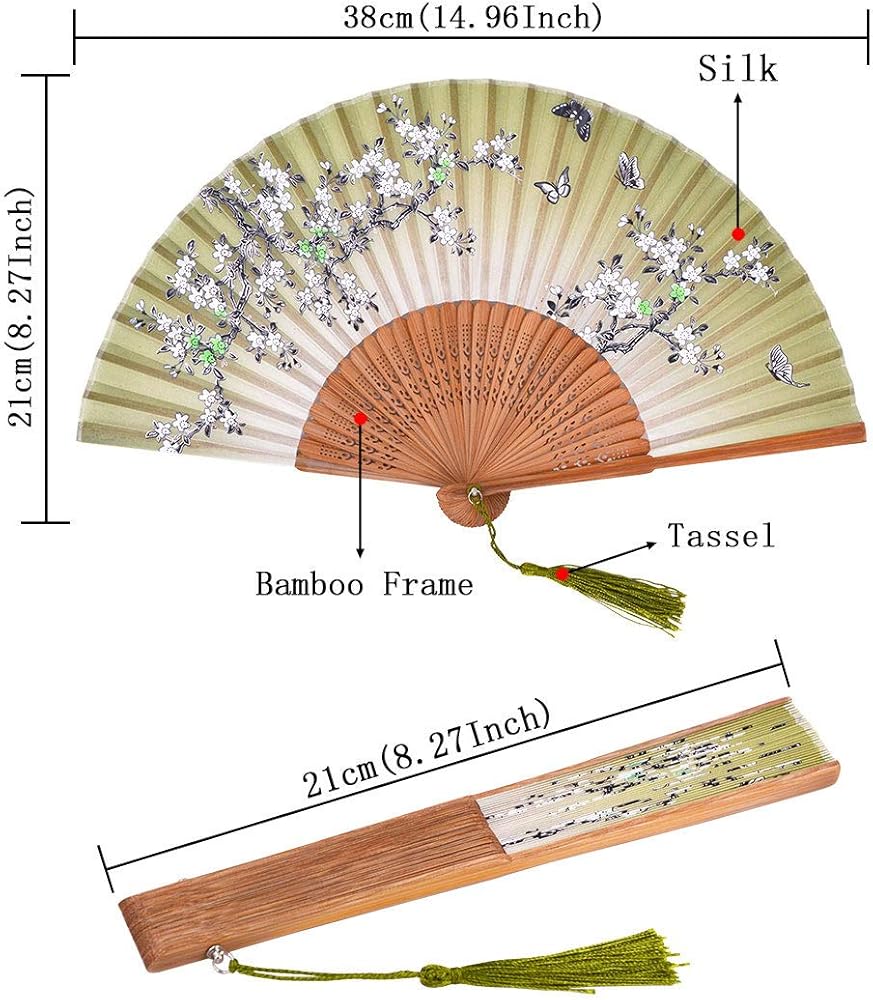 Amajiji Chinese Japanese fans folding fans for Women, Bamboo Silk hand fan handheld fans, Perfect for Party, Wedding, Dancing, Decoration, Performance, Gift