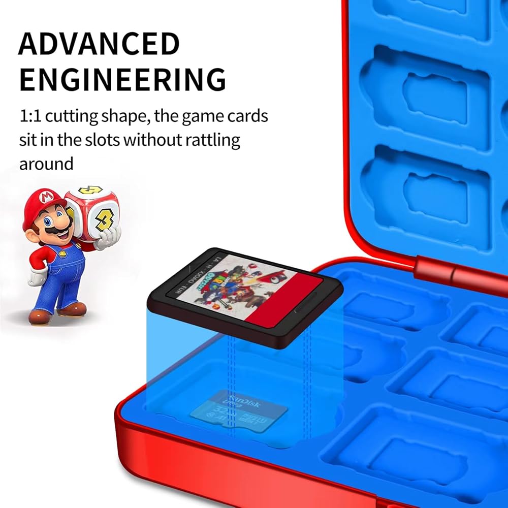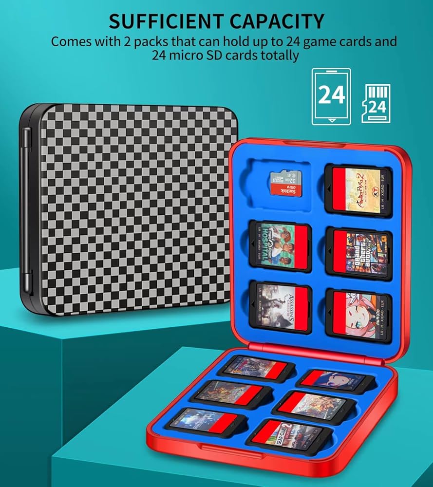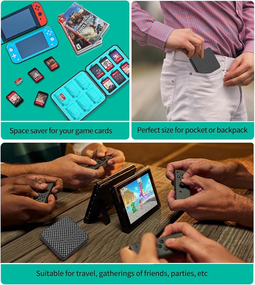🎮 ملحقات يجب اقتناؤها - إذا كان لديك مجموعة من ألعاب Switch وتحتاج إلى طريقة سهلة وآمنة لتنظيمها أو نقلها أو حتى عرضها، فإن الحافظة المخصصة لهذه الألعاب هي الحل الأمثل. ليس هناك ما هو أسوأ من الرغبة في الجلوس وممارسة لعبة ما ولكنك غير قادر على تحديد موقعها، باستثناء احتمال اكتشاف أن الخرطوشة قد تحطمت أو دمرت بسبب الانسكاب.