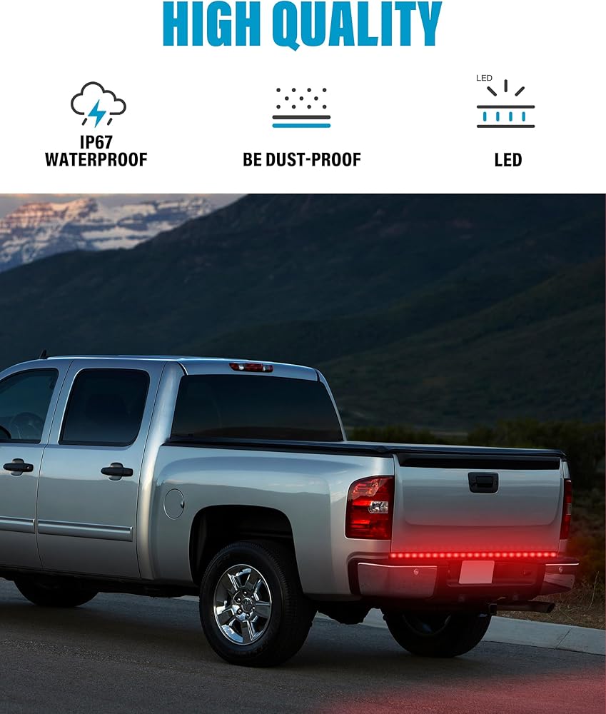 [سطوع لا مثيل له] يأتي ضوء الباب الخلفي LED بطول 48 بوصة مع 72 مصباح LED، ويأتي ضوء الباب الخلفي LED بطول 60 بوصة مع 90 مصباح LED. بغض النظر عن أي منها أكثر سطوعًا من الشريحة العادية، فإن ضمان إمكانية رؤية سيارتك حتى خلال ساعات المرور الأكثر ازدحامًا في النهار أو الليل، يضمن سلامتك على الطريق بشكل أفضل.
