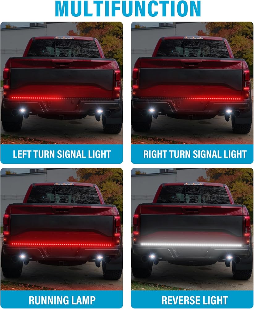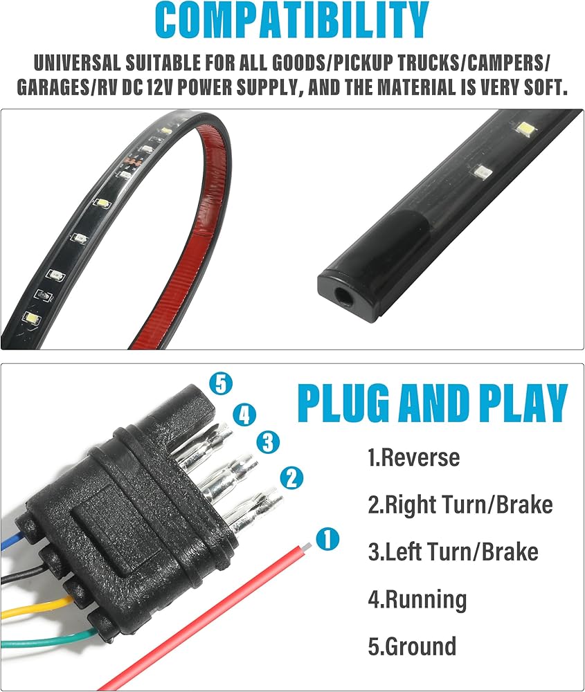 [قابل للتطبيق على نطاق واسع] يمكن شراء شريط إضاءة الباب الخلفي هذا بطولين: 48 بوصة و60 بوصة. موصل قياسي 4PIN، مناسب جدًا لمعظم الشاحنات الصغيرة والمقطورات والسيارات وسيارات الدفع الرباعي وRVs وVANs وما إلى ذلك.
