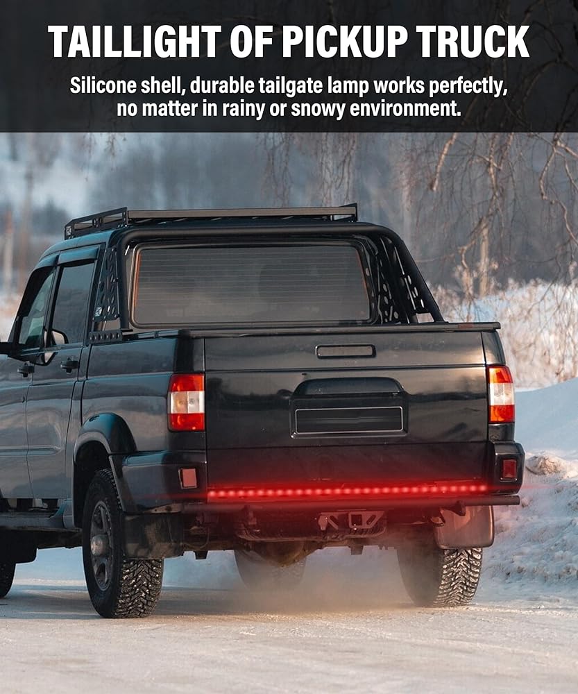 [قوي وموثوق] شريط إضاءة الباب الخلفي LED ذو الصف الواحد مصنوع من السيليكون المتين والمرن المقاوم للماء، وهو قوي ومتين، مع عمر خدمة يصل إلى 50000 ساعة. معيار IP67 للماء. لا تقلق بشأن مشكلات مقاومة الماء والصدمات والغبار والصدأ. إنه جاهز للتعامل مع الظروف الجوية القاسية مثل المطر والثلج وحتى -20 درجة فهرنهايت.