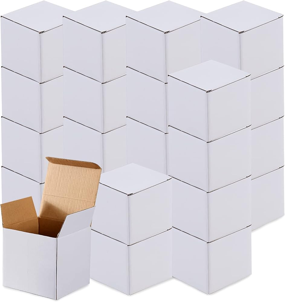 تتضمن العبوة - تأتي كل عبوة مع 25 عبوة من صناديق الشحن البيضاء مقاس 3.15 × 3.15 × 3.15 بوصة، صناديق الشحن الصغيرة هذه قوية ومتينة لإضافة الحماية إلى أغراضك الصغيرة.