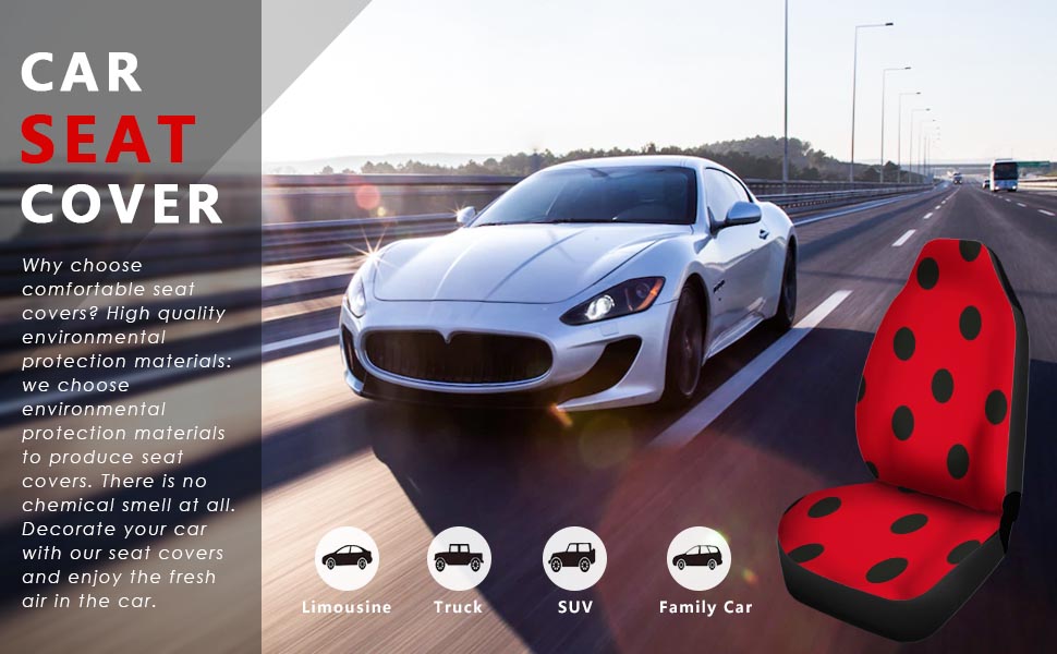 يغطي مقعد السيارة الأحمر الدعسوقة نمط الخنفساء الأسود الحيوان علة الكرتون مجموعة من 2 اكسسوارات السيارات حماة ديكور السيارة العالمي صالح لشاحنة سيارة سيارات الدفع الرباعي