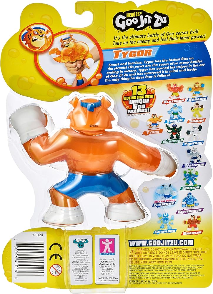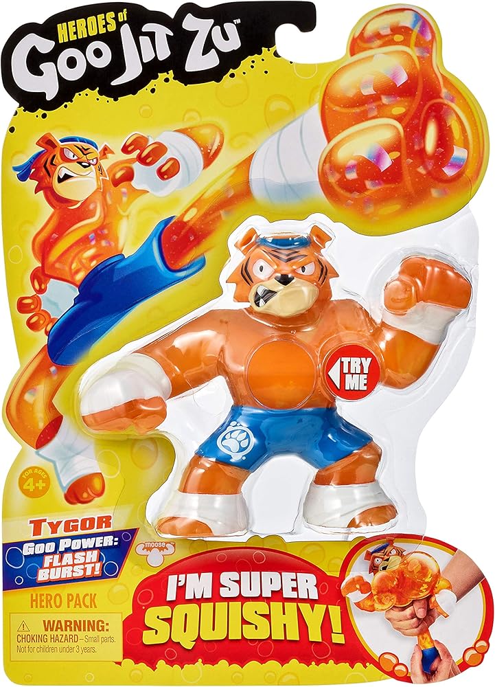 Style: Tiger the Heroes of Goo Jit Zu are the squishiest, stretchiest and gooiest action figures ever! Every character has a unique goo filling with a different texture and feel. There are 13 goo jit zu heroes to collect! Tyler the Tiger is super squishy! When you squeeze him his insides radiate light. Make sure to check out the Heroes of Goo Jit Zu cartoon on YouTube where you can watch your favorite heroes fight to save the day!