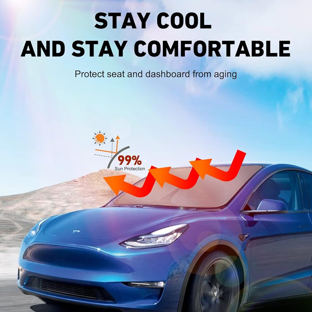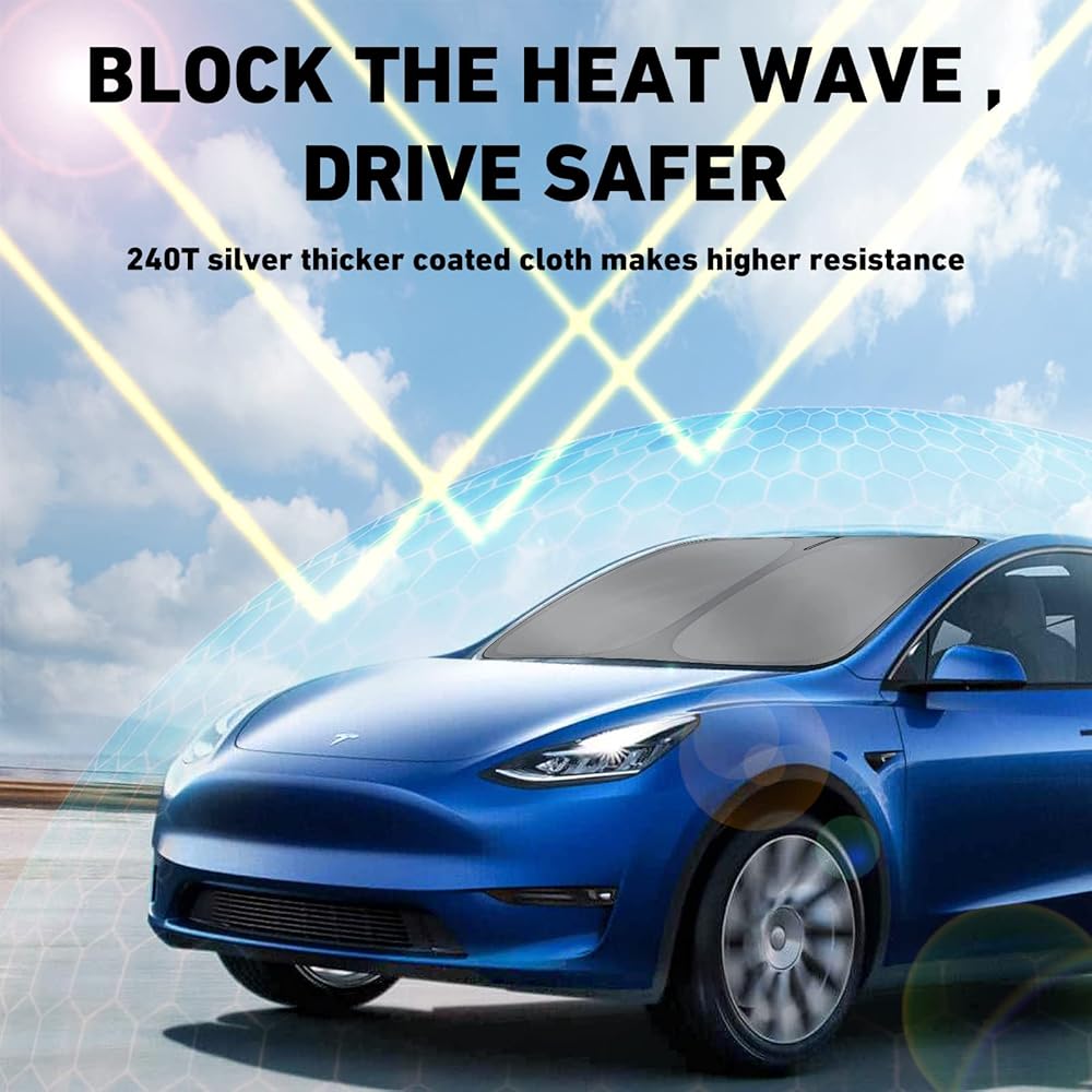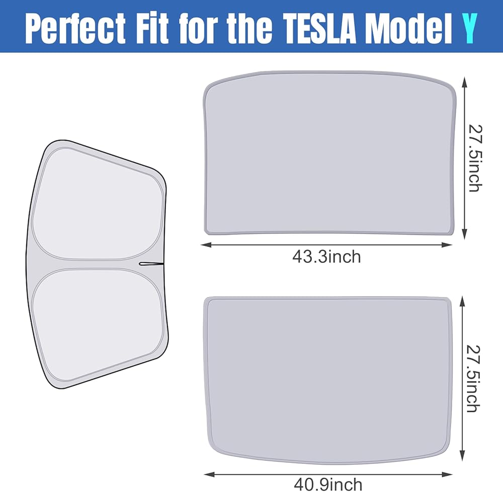 مظلة تيسلا موديل Y 2019-2023، أغطية شمس للزجاج الأمامي والسقف قابلة للطي، مجموعة من 3 قطع، ملحقات تيسلا موديل Y