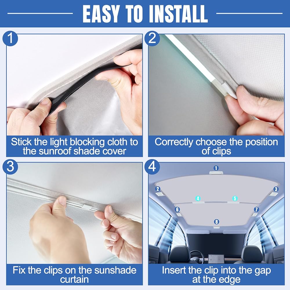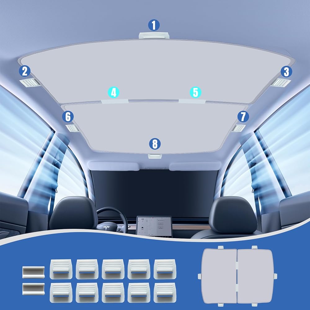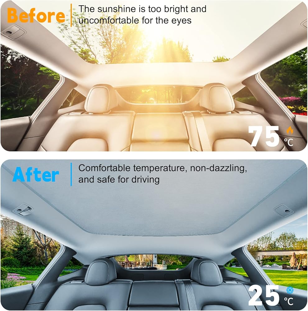 • [الإعداد] مظلة السقف مناسبة تمامًا لـ 2023 2022 2021 2020 2019 Tesla Model Y، تصميم مقطوع الحواف بدقة لن يعيق الوظائف الأصلية. تحتوي مظلة تيسلا هذه على طبقتين من القماش الذي يحجب الضوء، مما يمنحك أقصى تأثير للضوء والعزل الحراري في الطقس الحار.