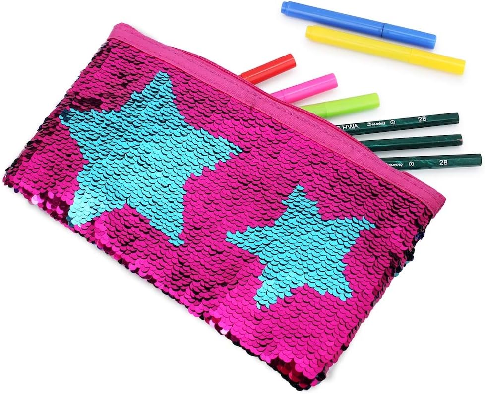 - حقيبة أقلام حورية البحر بالترتر: حقيبة للفتيات بالترتر اللامع بتصميم حورية البحر للمكياج والإكسسوارات
