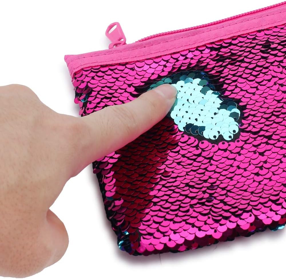 مقلمة لطيفة للفتيات والأطفال بتصميم حورية البحر ومزينة بالترتر وحامل قلم منظم مستحضرات التجميل وحقيبة محفظة للنساء (وردي فاقع)