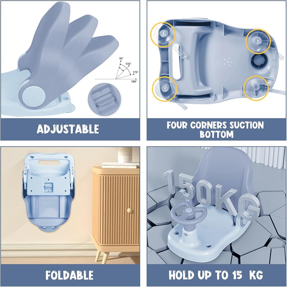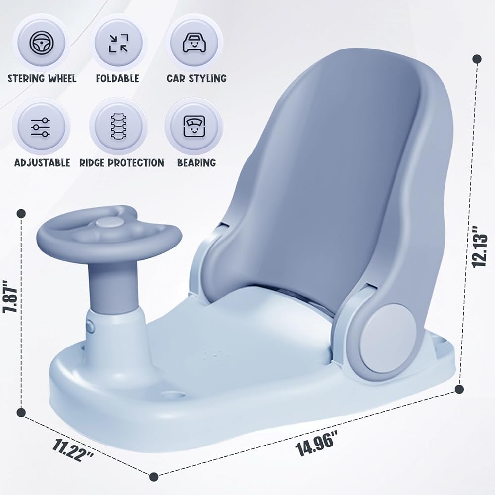 • 💗حرر يديك: يساعدك مقعد الاستحمام للأطفال الصغار هذا على دعم طفلك للجلوس في حوض الاستحمام لتحرير يديك لاستحمامه واللعب معه. تم تصميم عجلة القيادة أمام المقعد ليلعب بها طفلك. صرف انتباه الطفل وتسهيل عملية تحميمه.