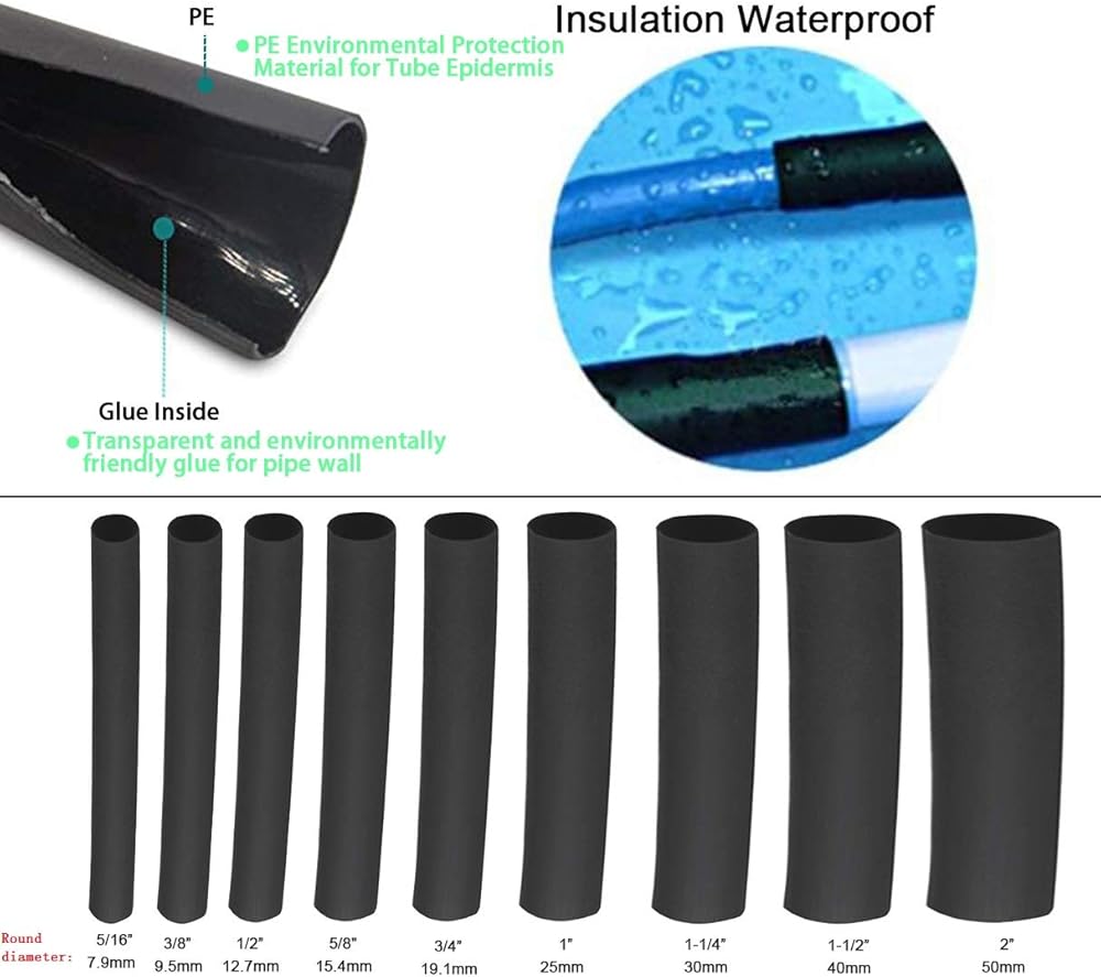 Our heat shrink tubing are widely used in Water resistant wire connector in electronic equipment ,prevent leakage and more strands of wire seal Water resistant, components of the sealed moisture-proof, Water resistant, corrosion protection and insulation protection, the seal Water resistant, wire and cable branch metal pipeline corrosion protection, repair of wire and cable, submersible pumps and the wiring Water resistant, etc. e.g. protect car engine battery cable, make soft tool grip, repair eyeglasses frame, reinforce headphone/charging cable, etc.
