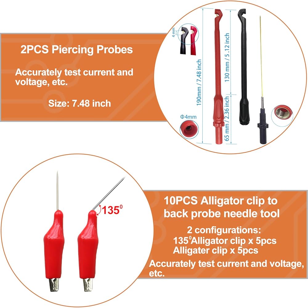 【Compatible with any Multimeter】This tool case is compatible with any automotive multimeter,and suitable for most of vehicles from Europe,America and Japan, Used in tracing, checking, measuring, or correcting complex vehicle circuitry. Can be used to monitor Hall sensors, fuel injectors, solenoid valves, etc. SRS connector provided can simulate air bag and routed contracting device of safety belt to avoid accident or miss-judgment. Suitable for most of the terminal.