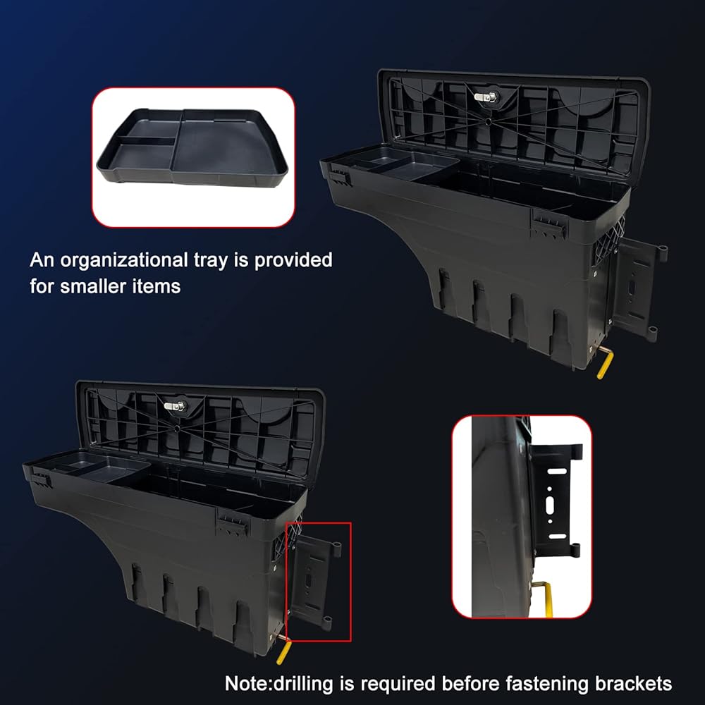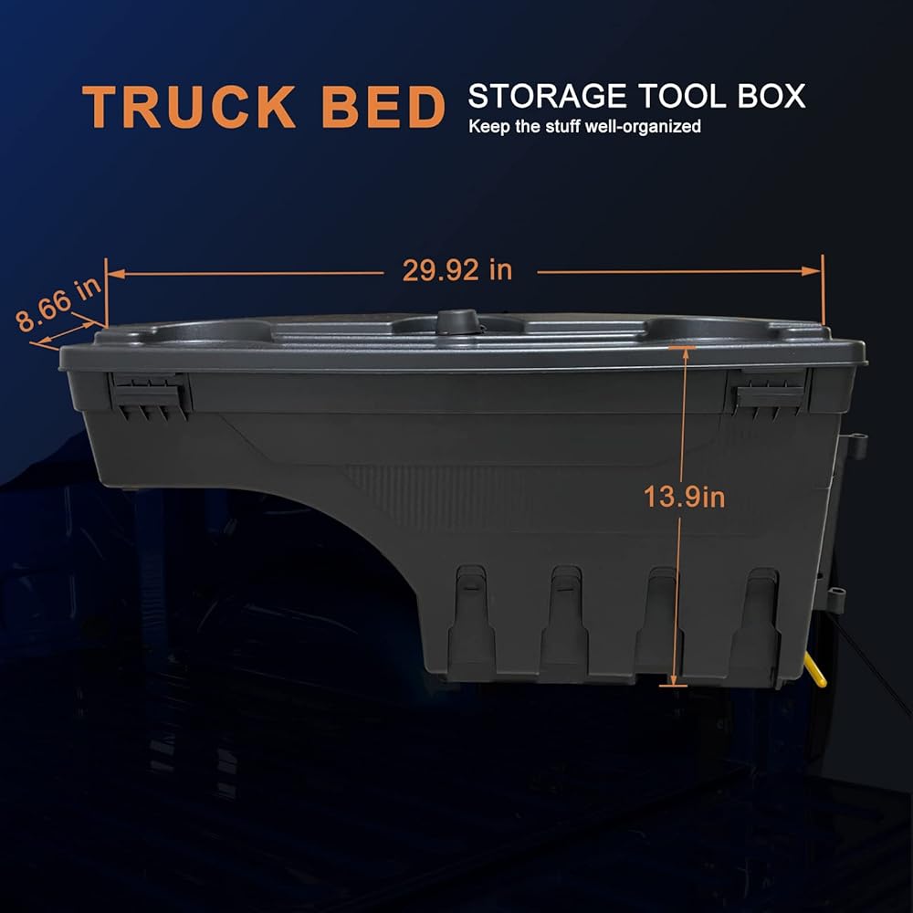 حل تخزين مثالي لمساحة سرير الشاحنة: تجنب التضحية بمساحة سطح الأرضية للحفاظ على الأدوات منظمة جيدًا، ولا حاجة للوصول إلى سرير شاحنتك أو التسلق فيه للحصول على أدواتك.