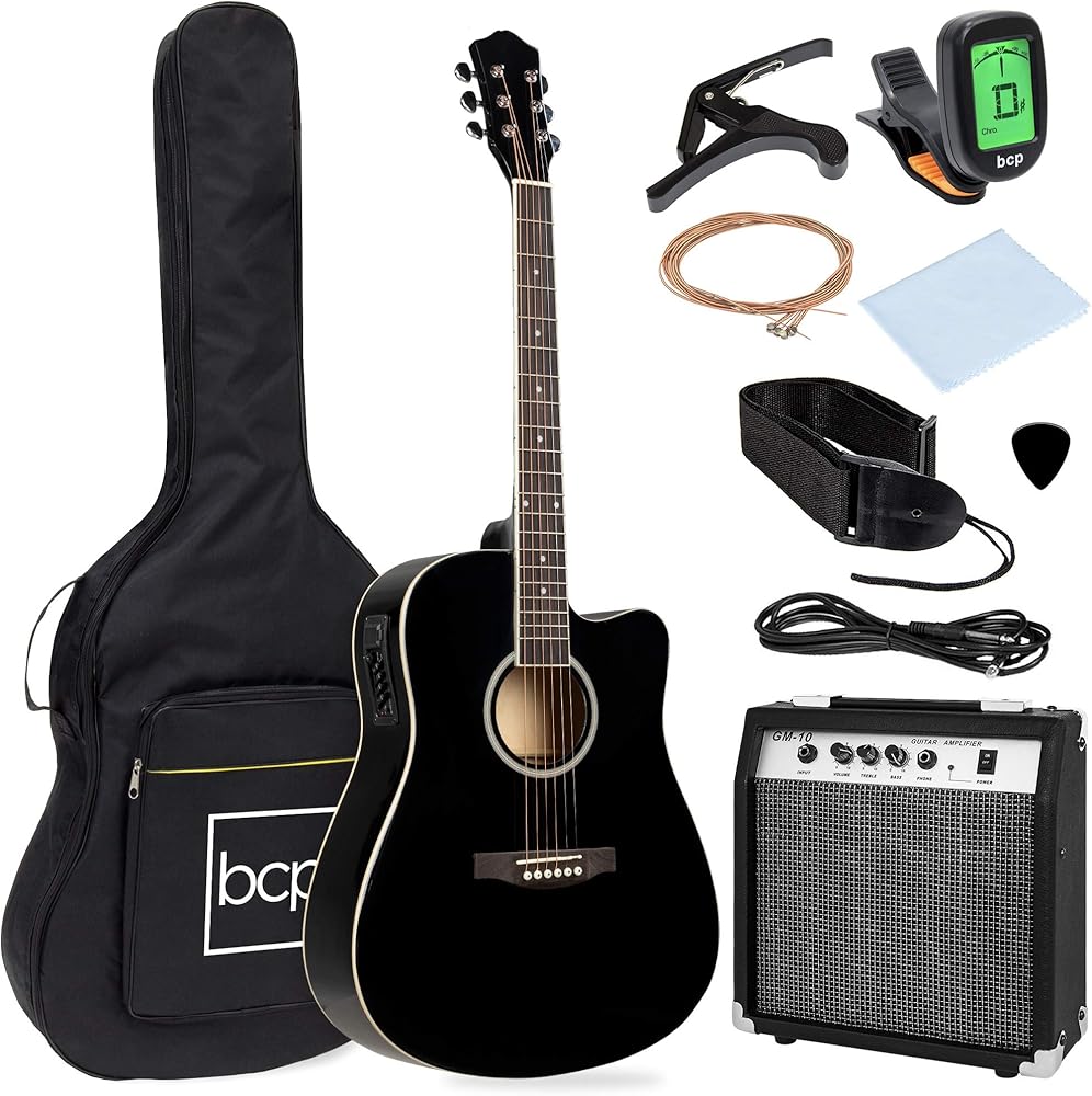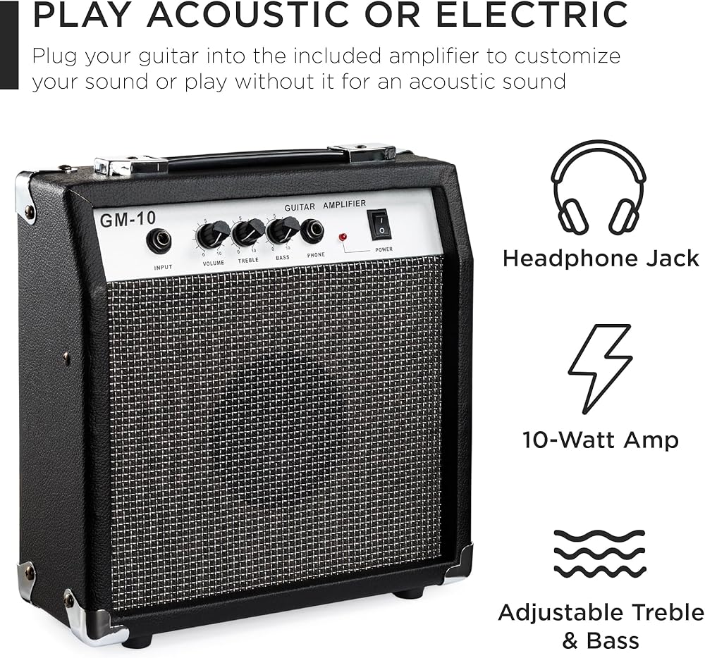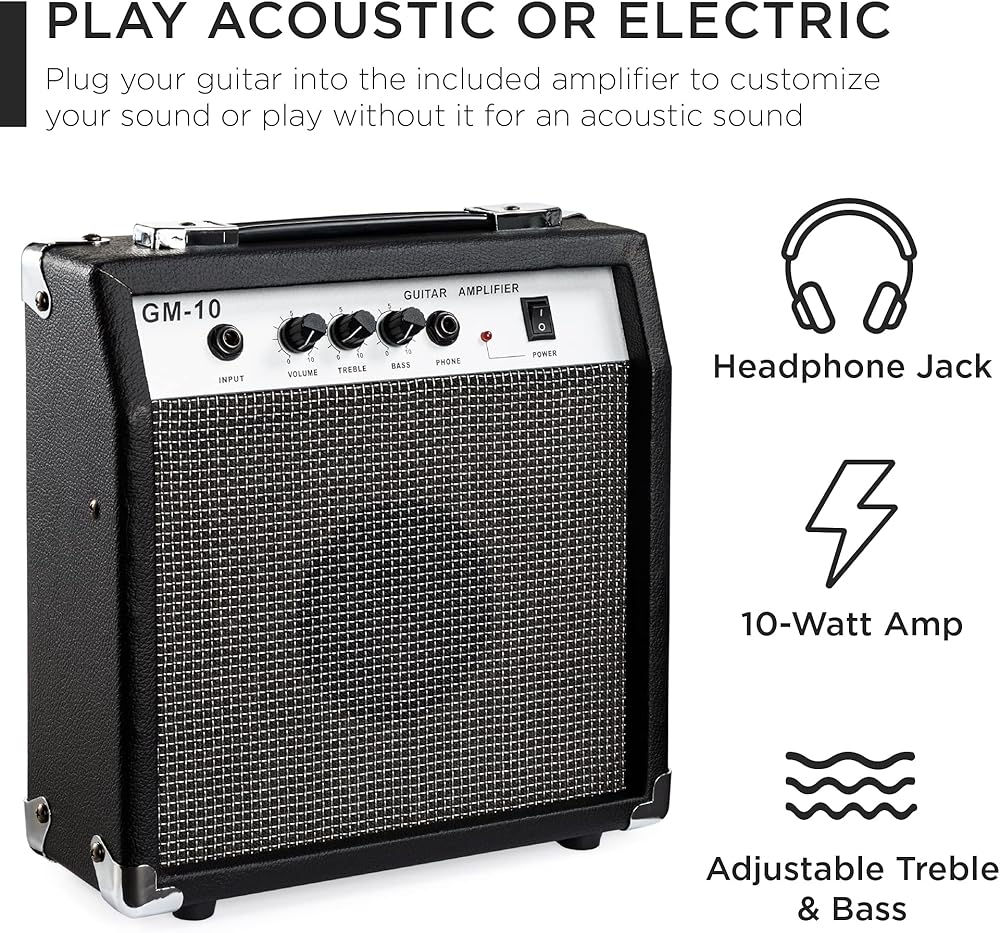 ALL-IN-ONE ACOUSTIC-ELECTRIC GUITAR KIT: No need to purchase any additional accessories, this all-inclusive set comes with an amplifier, carrying case, strap, pick set, tuner, and more