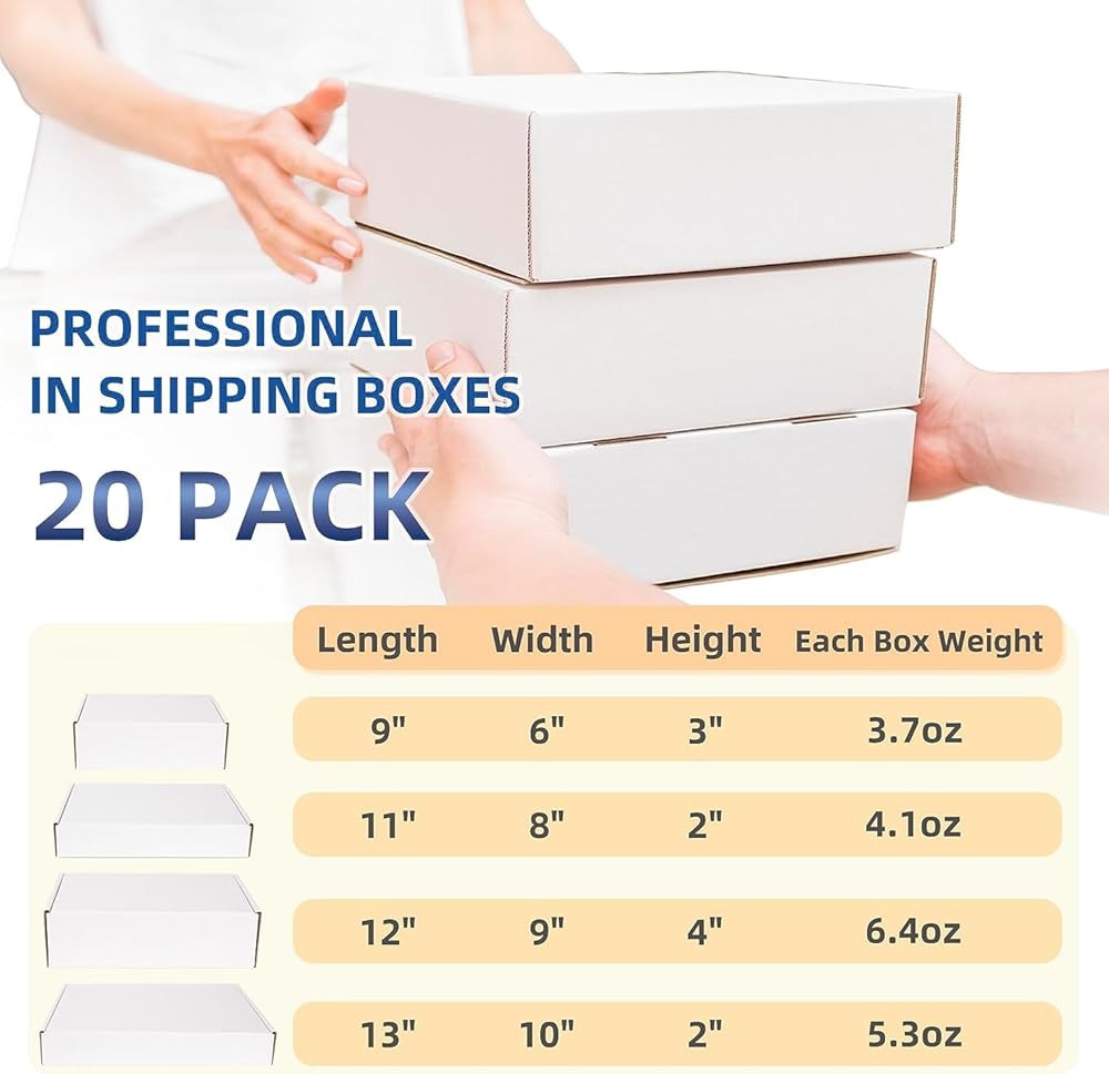 الأبعاد: تتضمن مجموعة صناديق الشحن 20 عبوة من صندوق الورق المقوى. حجم هذا الصندوق المتحرك الصغير هو 11 بوصة × 8 بوصة × 2 بوصة (طول × عرض × ارتفاع)، والحجم الداخلي 10.6 × 7.9 × 1.9 بوصة. مناسبة لتعبئة أو إرسال تلك العناصر الصغيرة وخفيفة الوزن بالبريد.