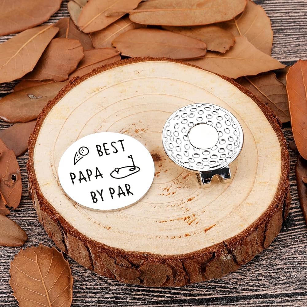 1.Golf Ball Marker Hat Clip for Him Dad—This is a great gift for the one who is golf ball lover and it is a great gift for dad as the coming father's day gifts. The hat clip engraved the sentence”Best Papa by Par”. Funny golf ball marker hat clip for dad, daddy, papa, best friend, papaw, adopted father, bonus dad, god daddy, father of the groom, father of the bride. Great sentence shows the love between father and daughter or father and son gifts, golf stuff, golf gifts for dad.