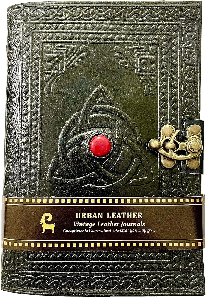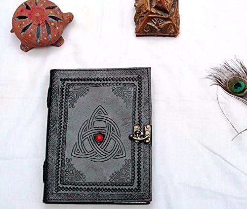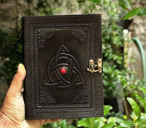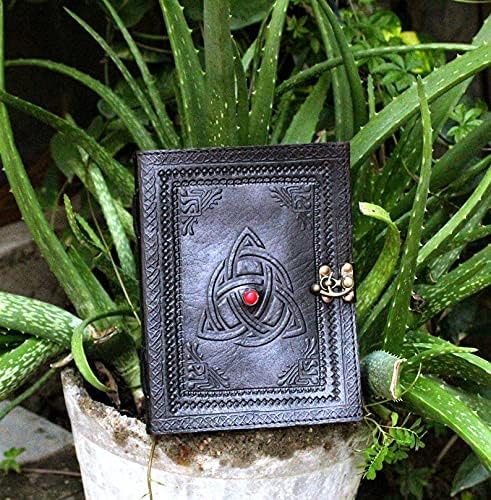 مجلة جلد اللازورد الجديدة بالكامل - 3 مون سلتيك - كتاب أسود للظلال السحرية كتاب تعويذة - مجلة مشبك مصنوعة يدويًا على الطراز القديم، صندوق هدايا متضمن + سلسلة مفاتيح جلدية حضرية مجانية