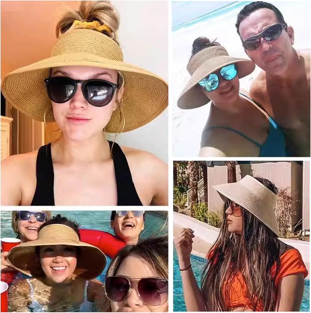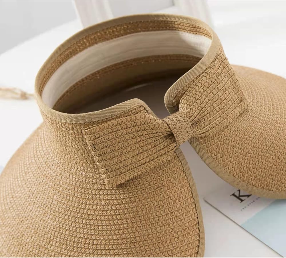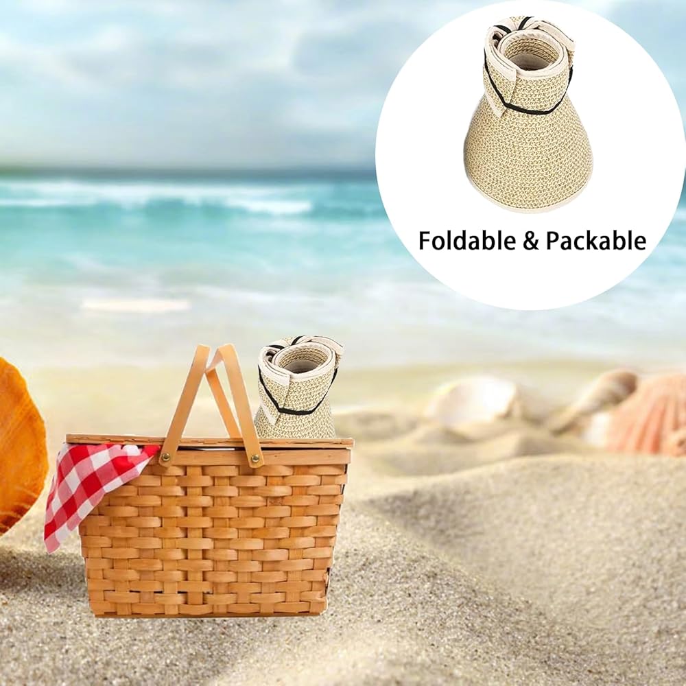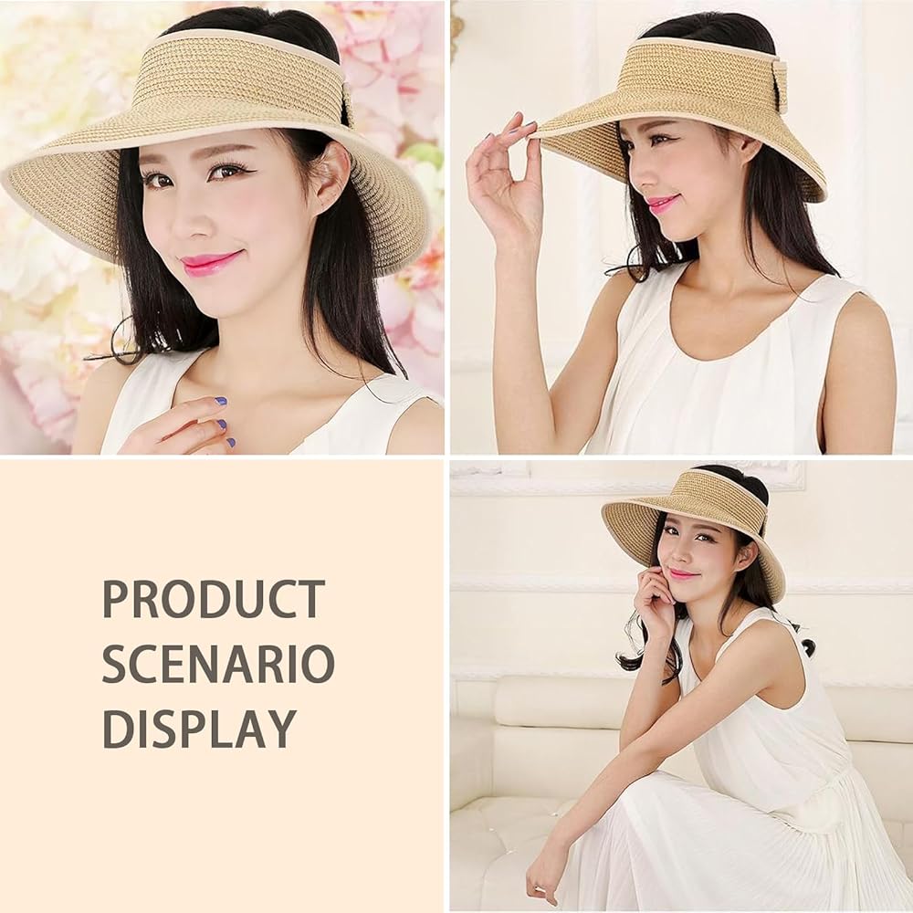 【Straw Visor Hat for Women】Our beach hats for women foldable is made of quality straw, good woven craftsmanship make them more durable, can last for a long time, it is lightweight and foldable, you can carry them easily when you go out.