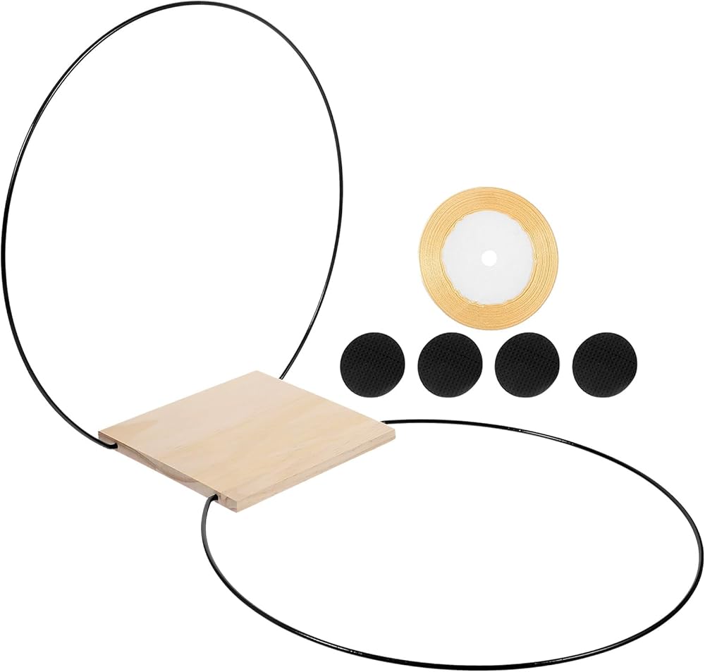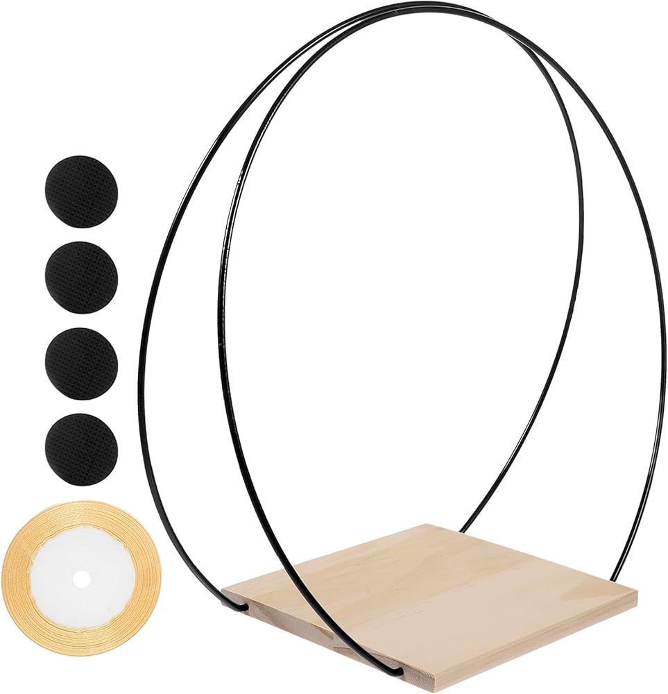 قطعة مركزية للطاولة على شكل حلقة إكليل زهور معدنية من BESPORTBLE مع حامل خشبي إكليل زهور على شكل طوق مكرمية DIY لحفلات الزفاف وعيد الحب وديكور الحائط قطعة واحدة