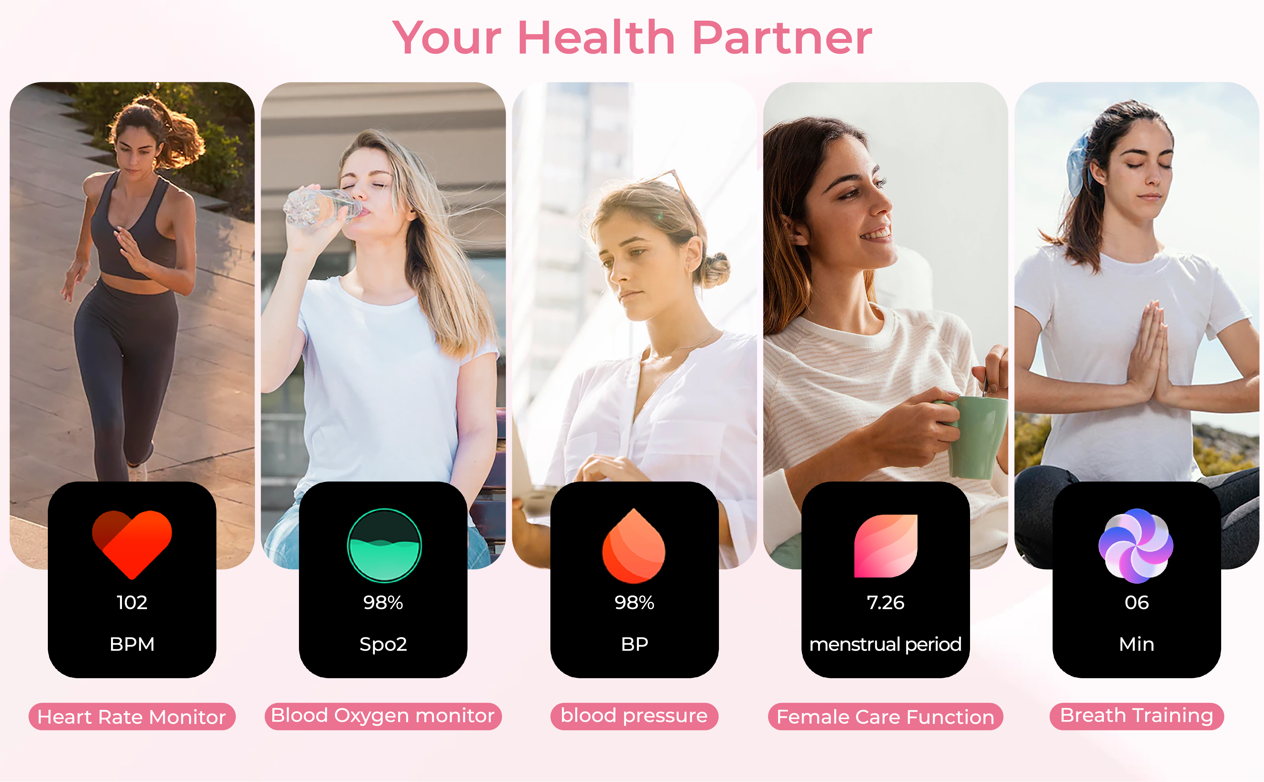 • 【مراقبة الأكسجين في الدم / معدل ضربات القلب / النوم ومتتبع الدورة الشهرية للإناث 】تعتمد ساعة تعقب الصحة لدينا على مستشعر متقدم، وتقوم بمراقبة معدل ضربات القلب على مدار 24 ساعة وتدعم قياس مستوى SpO2 لمرة واحدة مما يساعدك على اكتشاف مستوى الأكسجين في الدم كلما كنت يحتاج. وفي الوقت نفسه، فهو يدعم أيضًا مراقبة النوم وقياس التوتر وتدريب التنفس وتتبع الدورة الشهرية للإناث، مما يساعدك على مراقبة صحتك ورؤية بياناتك بسرعة من خلال التطبيق المصاحب لها.