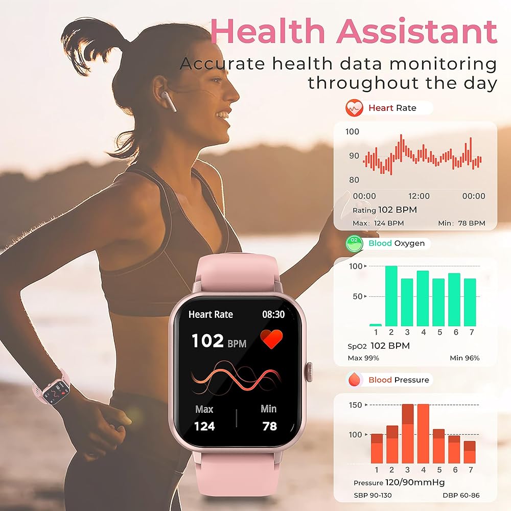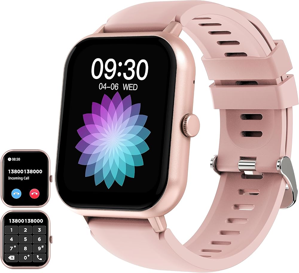 • 【شاشة لمس كاملة مقاس 1.8 بوصة ووجه قرص قابل للتخصيص】تم تصميم ساعات Wohingo الذكية بشاشة ملونة تعمل باللمس مقاس 1.8 بوصة مع نسبة دقة 240 × 280 توفر جودة صورة ممتازة، ويمكن تخصيص وجه الساعة هذا مما يعني أنه لا يمكنك فقط تخصيص صورتك كالساعة الوجه ولكن يمكنك أيضًا اختيار الاتصال السحابي داخل التطبيق. يوفر لك استخدام ساعتنا الذكية تجربة مستخدم أفضل ويتحقق بسهولة من تقارير البيانات التفصيلية.