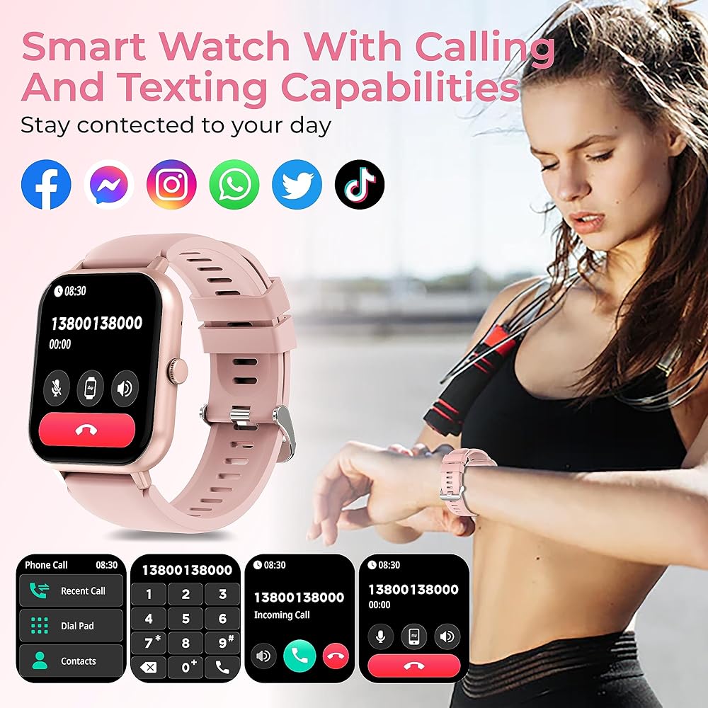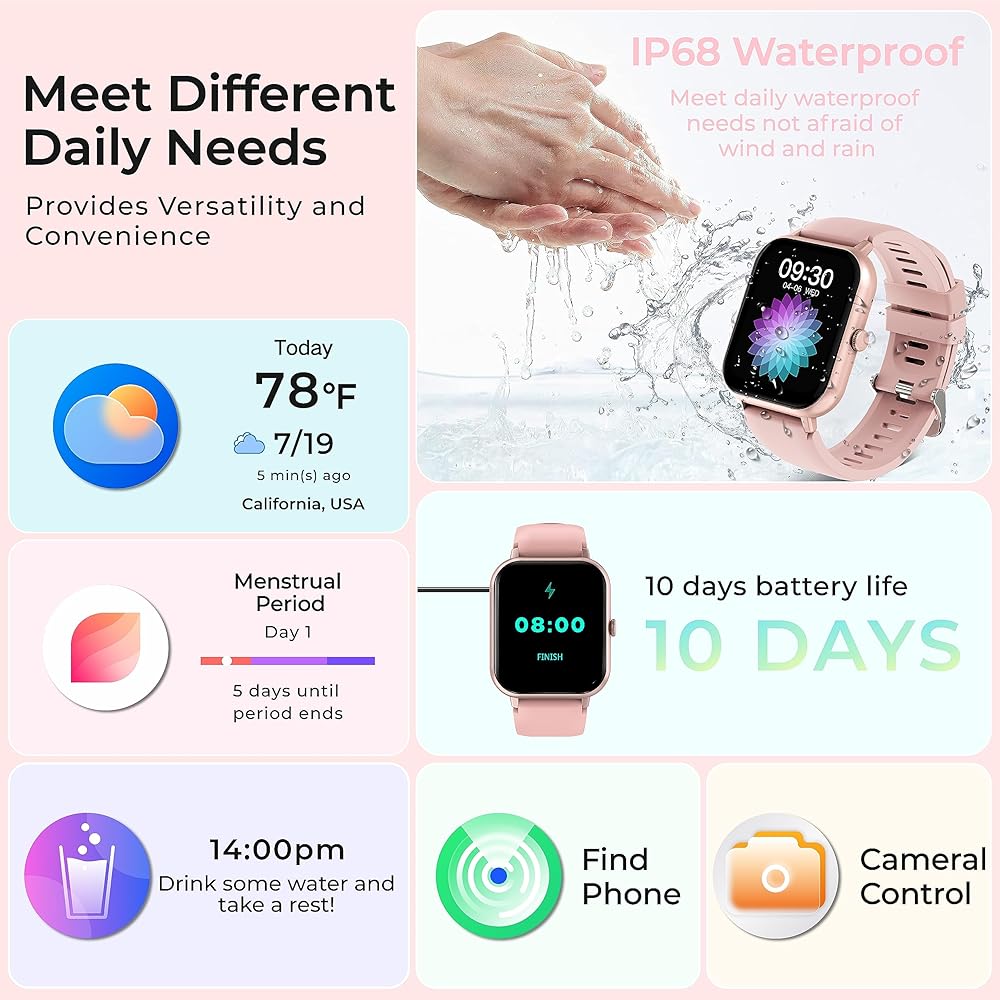 ساعة ذكية للنساء والرجال Android iPhone، ساعة ذكية 1.8 بوصة مع مكالمة بلوتوث (الرد/إجراء مكالمة)، متتبع اللياقة البدنية مع IP68 مقاومة للماء، معدل ضربات القلب SpO2