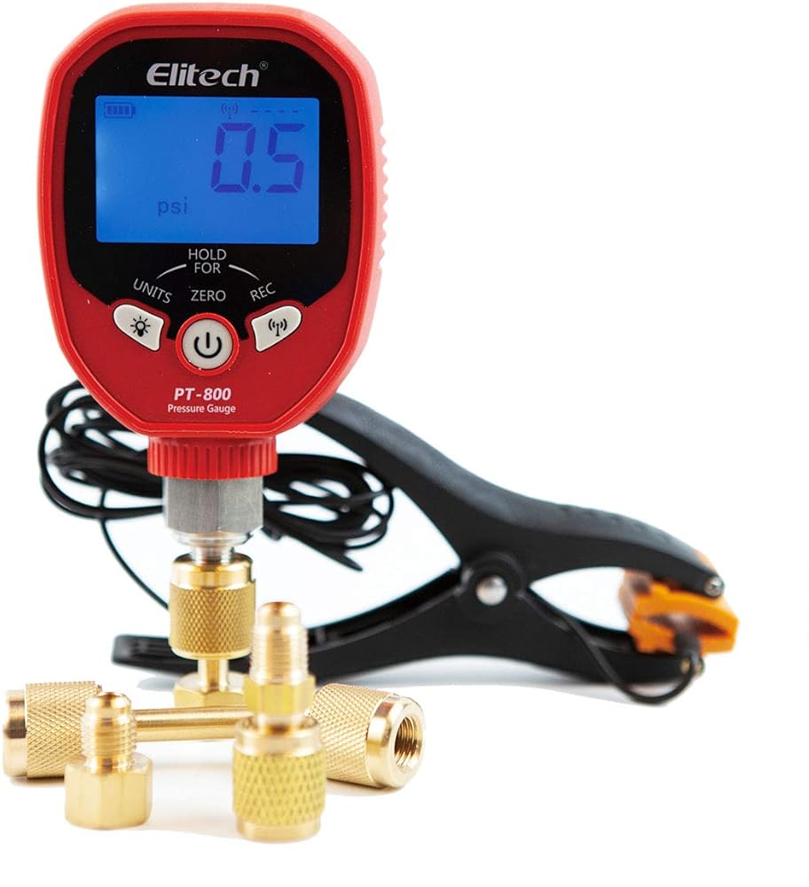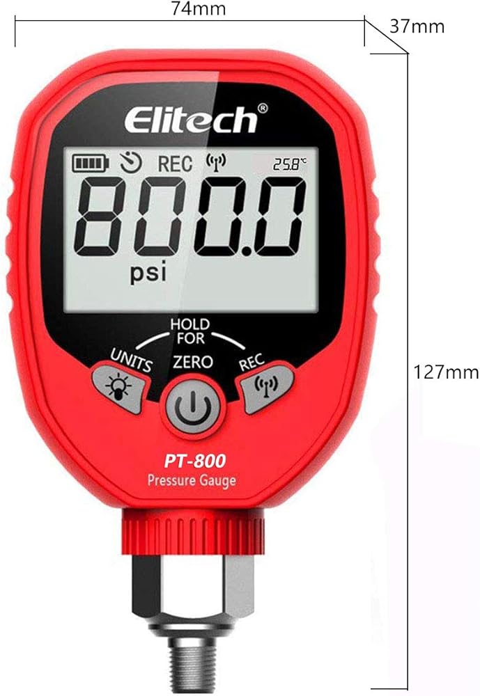 الحساب التلقائي: حسابات الحرارة الفائقة/الباردة، والتسجيل، وإعداد التقارير، وتحليل البيانات والمزيد باستخدام تطبيق Elitech Pressure Gauge ومتصل بتقنية Wireles، حتى 1187 بوصة في ظروف مثالية (بدون عوائق).