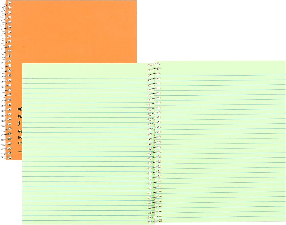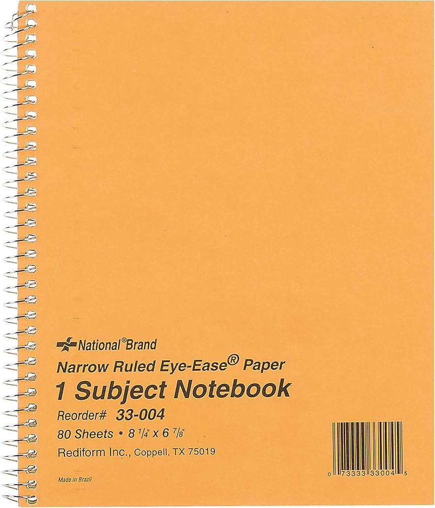 One-subject notebook features Eye Ease green paper, side-opening and no-snag, coilock wire binding. Each sheet is narrow-ruled with no margin. Notebook contains 80 sheets of 16 lb. paper protected by a brown board cover.